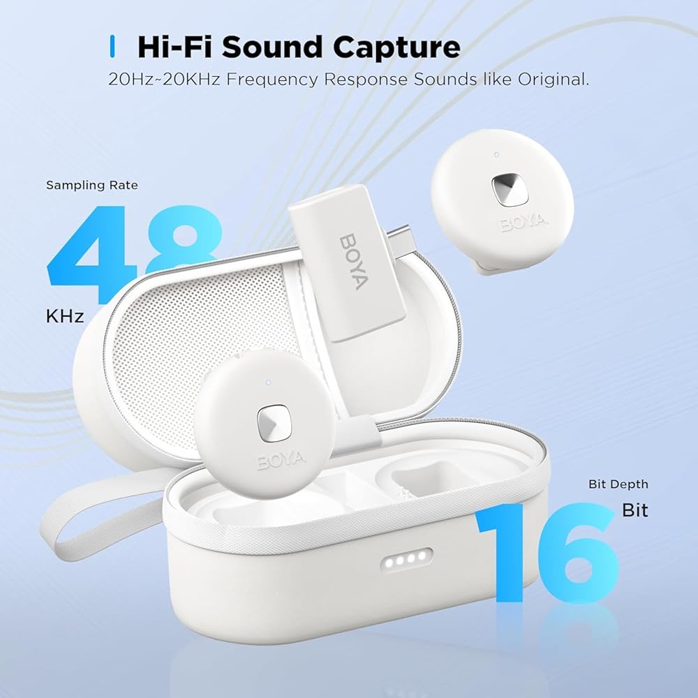 【تقليل الضوضاء الذكي】يحتوي BOYA Omic على وظائف كتم الصوت وتقليل الضوضاء. اضغط لفترة قصيرة لتشغيل/إيقاف كتم الصوت. انقر نقرًا مزدوجًا لتشغيل/إيقاف تشغيل تقليل الضوضاء. يمكنه التعرف على الصوت الأصلي بشكل فعال وتسجيل صوت واضح في بيئة صاخبة. يمكنه توفير جودة صوت عالية الوضوح تبلغ 48 كيلو هرتز لتقليل أعمال ما بعد التحرير.