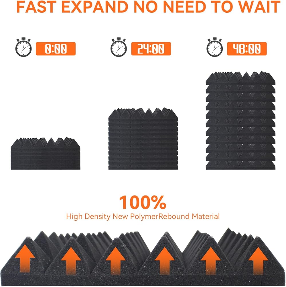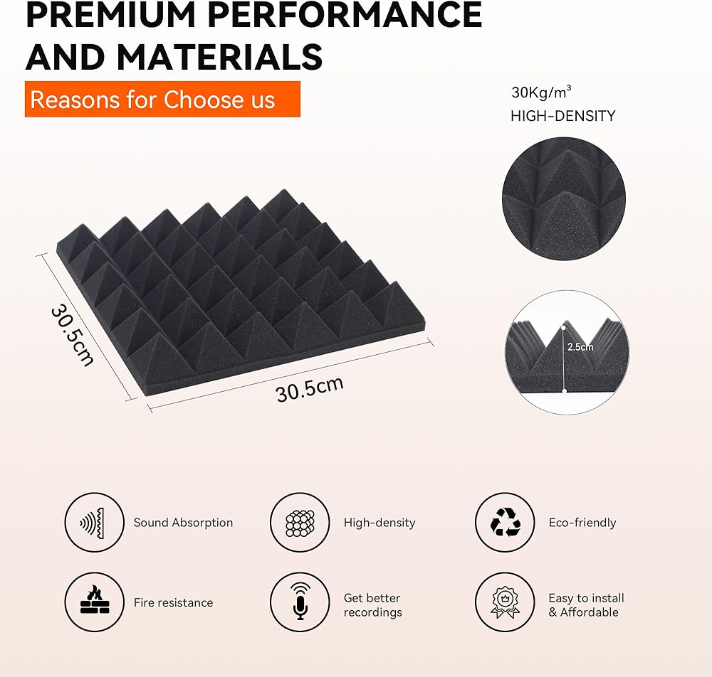 سهلة التركيب - تتميز ألواح الرغوة الصوتية بأنها خفيفة الوزن ويمكن تركيبها على مجموعة متنوعة من الأسطح المختلفة. لا توجد حاجة لأي أدوات خاصة للتثبيت. يرجى ملاحظة: الشريط/الأشرطة ذات الوجهين أو الغراء غير متضمنة في العبوة ويجب شراؤها بشكل منفصل.