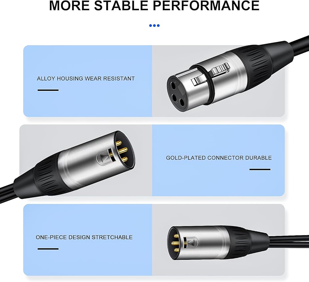 توافق واسع: كابل XLR y-splitter 2 أنثى إلى 1 ذكر متوافق مع الميكروفون اللاسلكي، ولوحات الخلط، وفتحات التصحيح، والمضخمات، وأنظمة السماعات، والخلاط، ومضخم الصوت، والمعادل، والمحدد، والتقاطع أو غيرها من المعدات ذات موصلات XLR ذات 3 دبابيس.