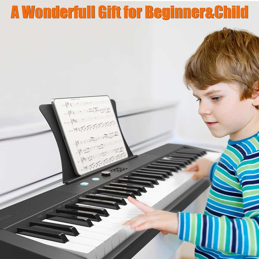 🎹 بيانو كهربائي وظيفي: مجهز بـ 200 نغمة و200 إيقاع و70 أغنية تجريبية، مما يمنحك الكثير من الخيارات لاستكشاف عالم الموسيقى. إنها مصممة لإلهام إبداعك وتعزيز تجربة اللعب الخاصة بك!