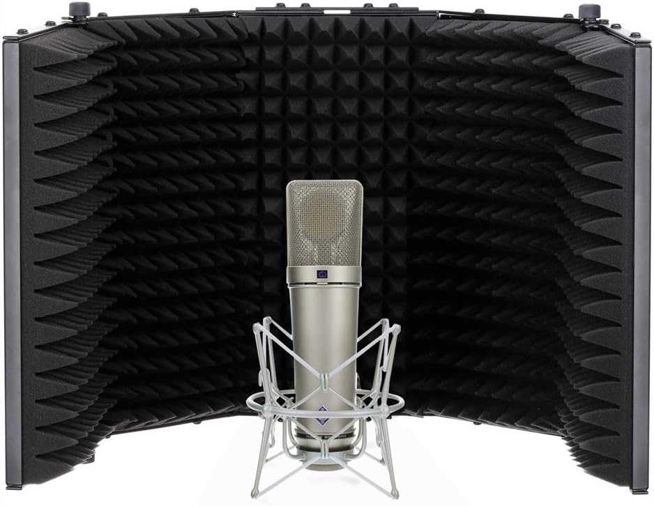 The nickel U 87 Ai Condenser Microphone from Neumann is a large dual-diaphragm condenser microphone. It features three directional patterns, including omnidirectional, cardioid and figure-8. These are selectable with a switch below the head grille and the window above this switch shows the symbol of the selected characteristic. A 10 dB attenuation switch is located on the rear. It enables the microphone to handle sound pressure levels up to 127 dB without distortion. The low frequency response can be reduced to compensate for proximity effect. The U 87 Ai is used as a main for orchestra recordings, as a spot microphone for single instruments, and extensively as a vocal microphone for all types of music and speech. This bundle includes a RF-5P-B Reflection Filter from Auray is designed to improve the quality of voice recordings captured in your home studio, rehearsal studio or other untreated acoustic environment by absorbing and isolating the microphone from unwanted ambient reflections. Plus a RFMS-580 Reflection Filter Tripod Mic Stand from Auray features heavy duty steel construction and is capable of providing sturdy support to your reflection filter and studio microphone at the same time. Box Contains Neumann U 87 Ai Condenser Microphone (Studio Set, Nickel) Neumann U 87 Ai Condenser Microphone (Nickel) Neumann EA87 - U87 Shock Mount for U87 Microphones (Nickle) Wooden Box 2-Year Warranty Auray RF-5P-B Reflection Filter (Metal) Mounting Hardware 1-Year Warranty Auray RFMS-580 Reflection Filter Tripod Mic Stand 1-Year Warranty