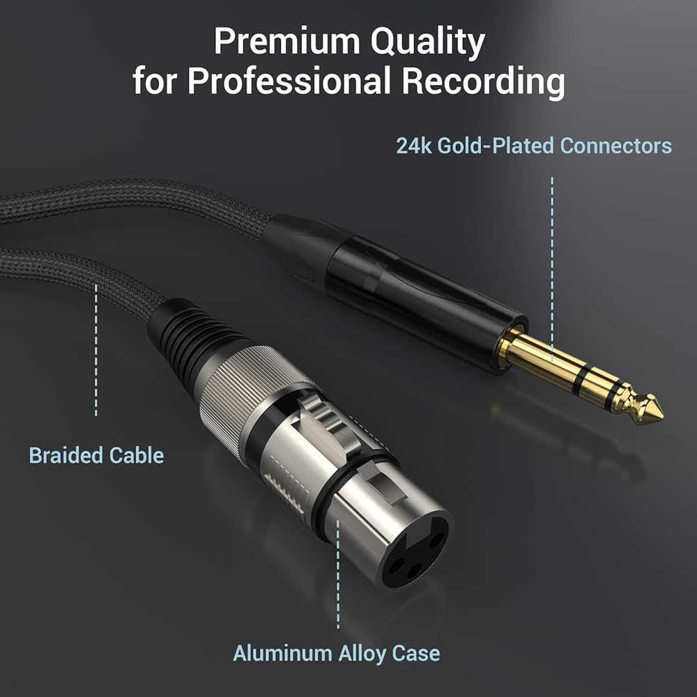 توافق واسع: كابل Cubilux XLR أنثى إلى 1/4 بوصة TRS يضمن التوافق مع مجموعة واسعة من الأجهزة الصوتية، مما يجعله مثاليًا للاستوديوهات والمراحل والإعدادات المنزلية.
