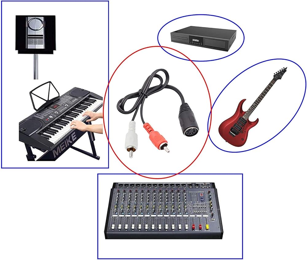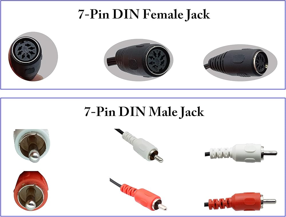 Usage High quality professional MIDI device cables, audio signal transmission is fast. Good shielding, widely applicable to all kinds of MIDI device connections, like BeoSound 3200, BeoSound 4000 (Overture), BeoCenter 2300, BeoCenter 9000, 959 Telefunken Console, ect electric piano and guitar MIDI electronic Musical Instruments 7 pin DIN to RCA cable is perfect for connecting a CD player, VCR, DVD, Phono or LD to a Bang & Olufsen, Naim, Quad or any other European type stereo equipment with Din 7 Connector. 7-Pin Din Female to 2-RCA Male Professional Premium Stereo Audio Y Cable for Bang & Olufsen, Naim, Quad Stereo Systems Feature Connector A: 7 Pin Din Female Connector Connector B: 2 RCA Male Connectors Meterial: Flexible but durable PVC jacket Cable Length: 50cm Package 1 x MIDI DIN Audio Cable