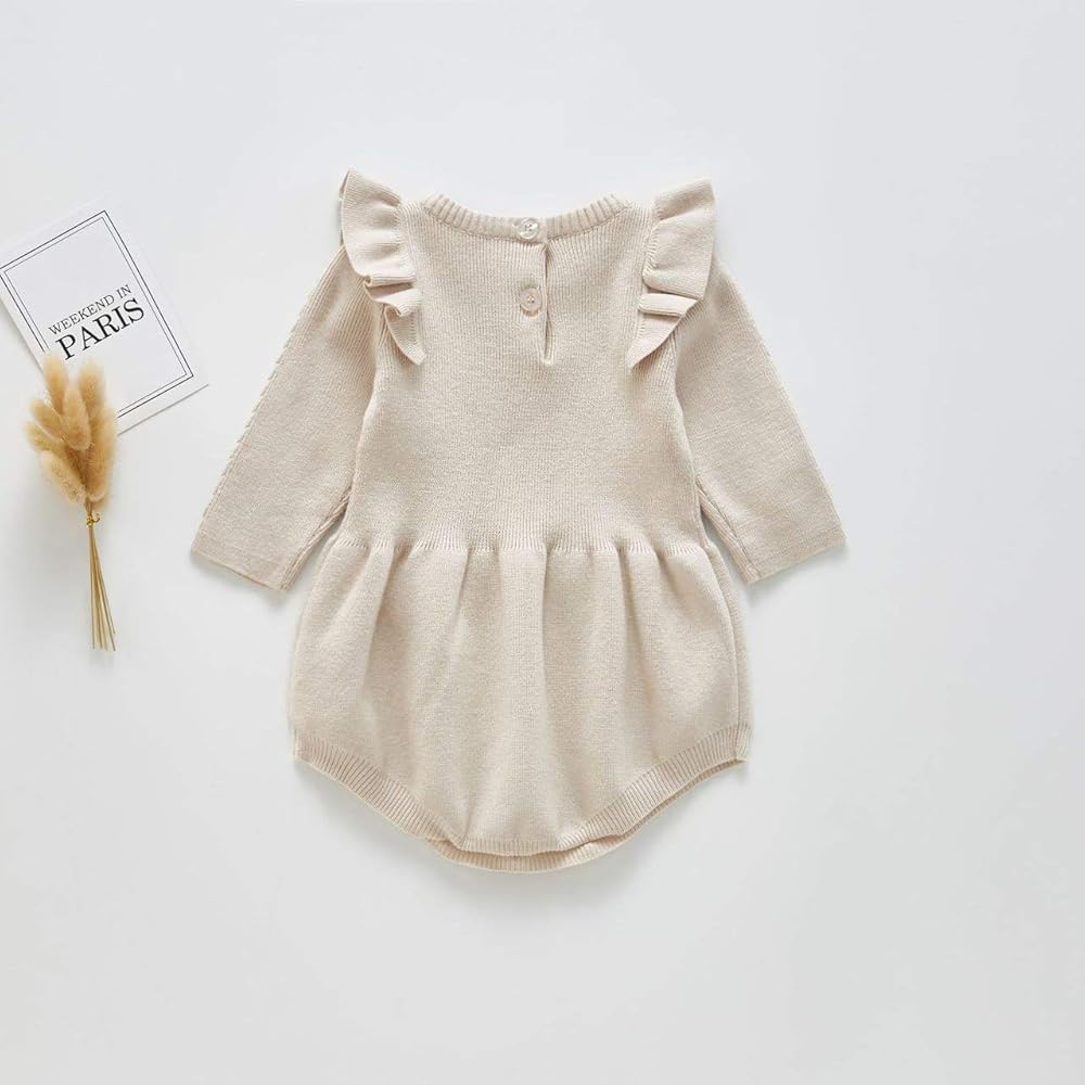 • Elegant Knit Sweater Romper: Baby sweater romper princess crochet knitted fall outfits clothes. Cotton knitted bodysuit with good elasticity. Long sleeve ruffle romper, solid color jumpsuit, makes your little baby girl warm. Boho baby girl clothes great as newborn sweater, 1st Valentine's Day outfit for infant baby girls, fall winter sweater features fine crochet floral ruffles. Baby girl romper baby girl photoshoot outfits can as birthday outfit, twins little big sister matching outfits;
