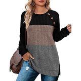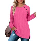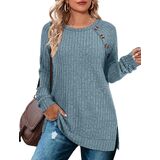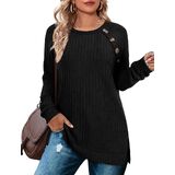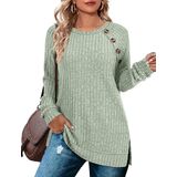 تصميم فريد: رقبة دائرية كلاسيكية مع أزرار لطيفة على جانب واحد. تفاصيل مخططة غير مرئية تظهر شخصيتك بشكل لطيف، حاشية جانبية مقسمة تناسب أي شكل من أشكال الجسم. قمة أنيقة وعصرية أبدا عفا عليها الزمن! هذه الأزرار مخصصة للزينة فقط، ولا يمكن فك أزرارها.