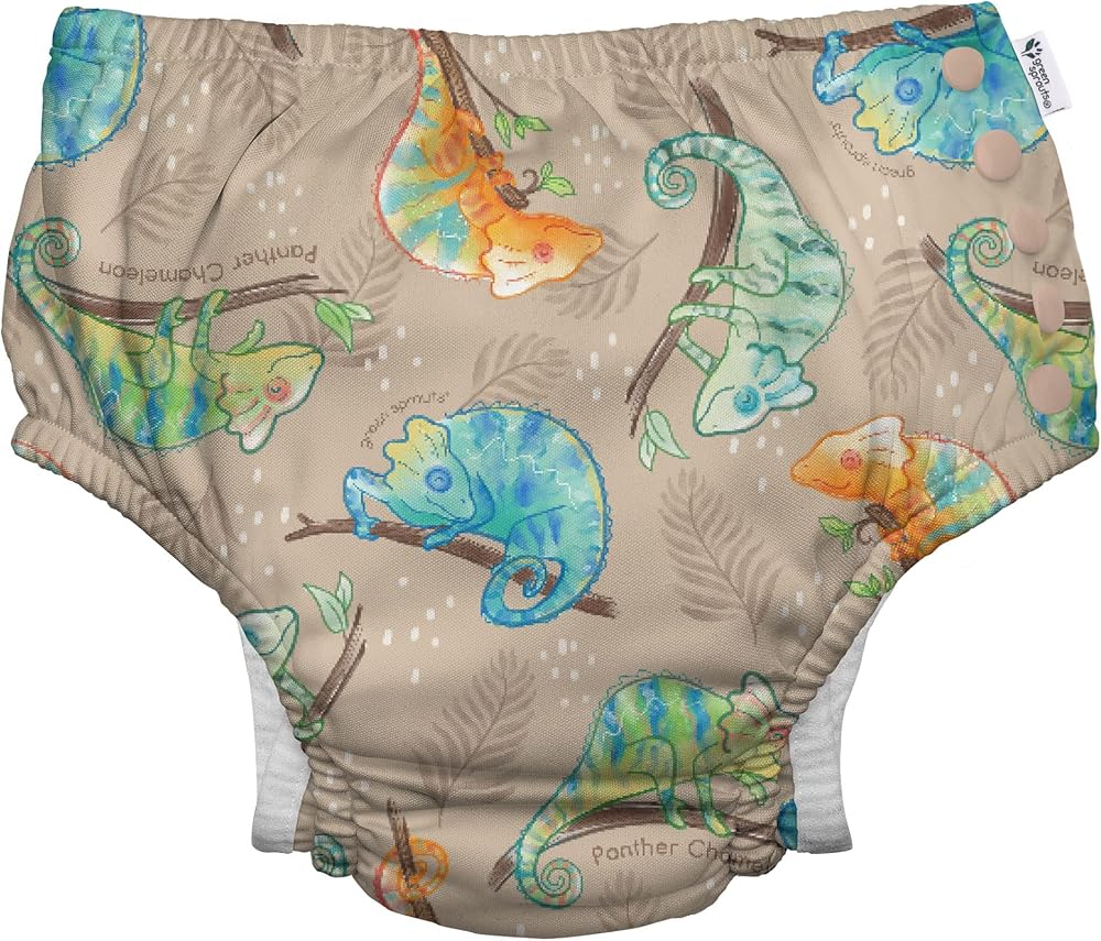 ألعب. بواسطة Green Sprouts، حفاضات سباحة Eco Snap قابلة لإعادة الاستخدام مع أحزمة حماية من الأشعة فوق البنفسجية 50، 3T، حرباء النمر الرملي - التنوع البيولوجي، تصميم حاصل على براءة اختراع، معيار 100 بواسطة OEKO-TEX معتمد