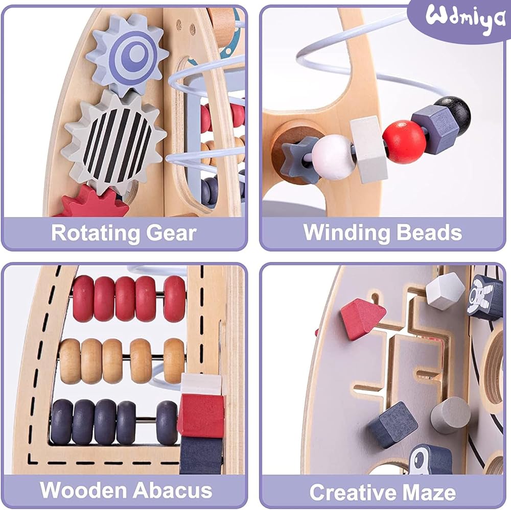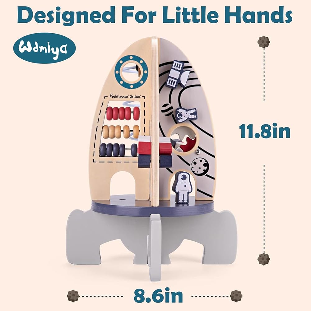 ألعاب مكعبات الأنشطة الخشبية من Wdmiya Space للأطفال، ألعاب مونتيسوري لهدايا عيد ميلاد للأولاد والبنات بعمر عام واحد، هدايا عيد ميلاد حسية وتعليمية، ألعاب لوحية مشغولة للأطفال من سن 6 إلى 18 شهرًا (صاروخ)