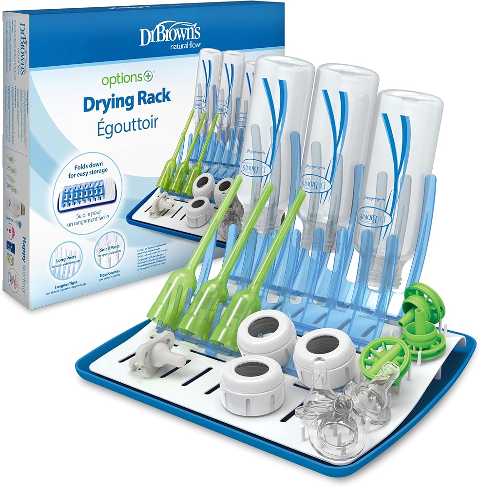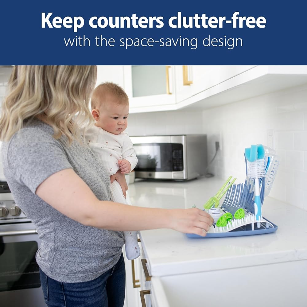 • FOLDABLE BABY BOTTLE DRYING RACK. Save time and counter space when washing baby essentials.