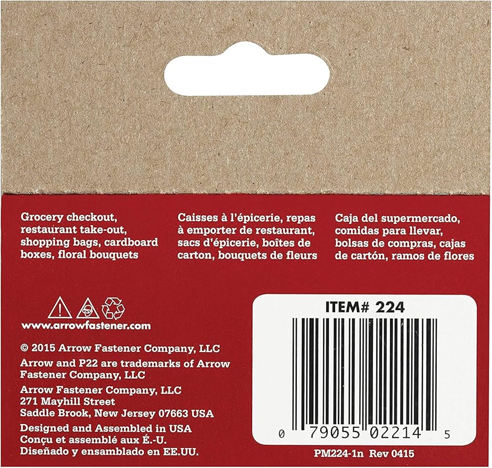 The Arrow genuine 1/4-inch staples are designed for use with the P22 heavy-duty plier-type stapler. Featuring 1/4-inch leg length and a 7/16-inch crown, these heavy-duty staples are idea for thin paper and paper bags. Pack of 5,050.