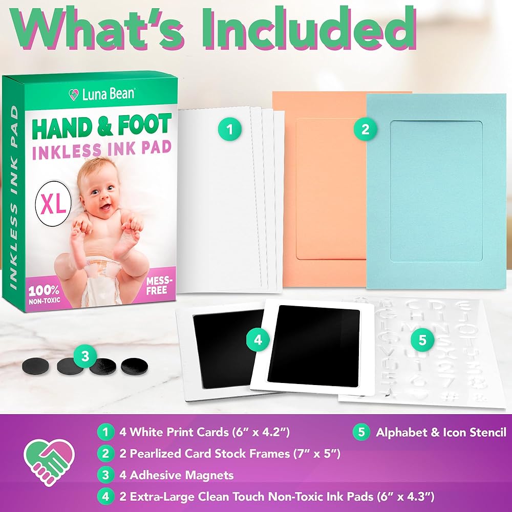 تذكار لا يتأثر بمرور الزمن - لن تظل تلك الأيدي والأقدام الصغيرة صغيرة إلى الأبد. استمتعي باللحظات الصغيرة مع مجموعة يد الطفل وبصمة قدمه من لونا بين. مع نمو طفلك الصغير، سيساعدك هذا التذكار الخالد على التفكير في مدى صغر حجمه في السابق.