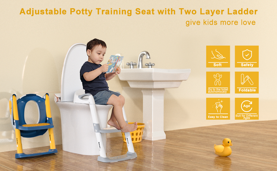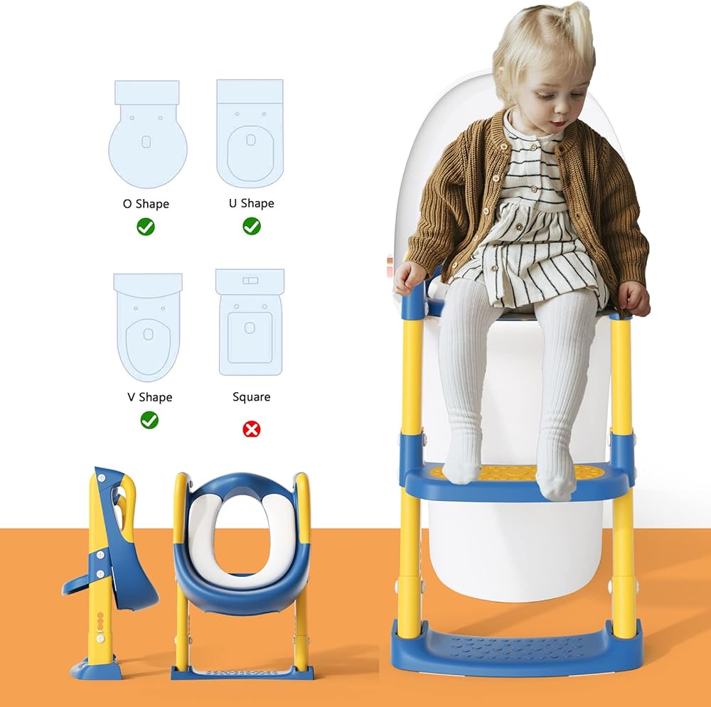 مقعد المرحاض للتدريب على المرحاض من GLAF لكرسي الأطفال الصغار مع سلم للأولاد والبنات 2 في 1 مقعد نونية للأطفال قابل للتعديل مع وسادات مضادة للانزلاق ووسادة مريحة (أزرق)