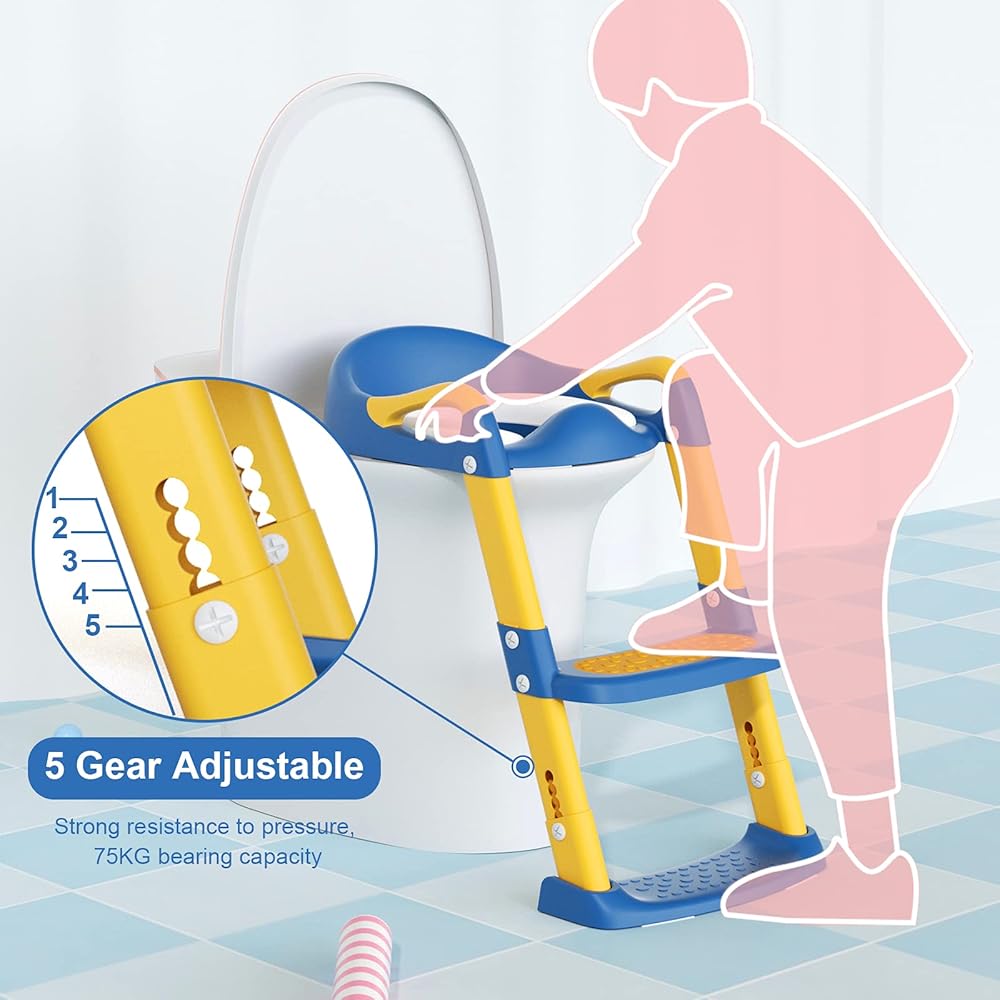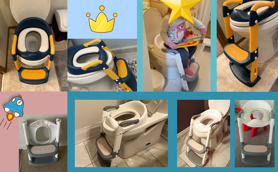 آمن وغير قابل للانزلاق: مقعد التدريب على استخدام المرحاض هذا مصنوع من مادة البولي بروبيلين الآمنة بسعة تحميل قصوى تصل إلى 75 كجم (165 رطلاً). تم تصميم الوسادة المطاطية غير القابلة للانزلاق لمنع الأطفال من الانزلاق بشكل فعال. السلم الأوسع المضاد للانزلاق يجعل من السهل على الأطفال الاستدارة.