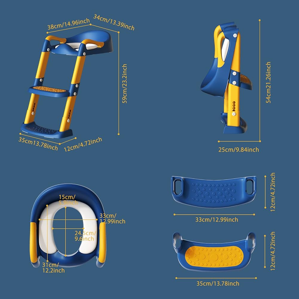 وسادة قابلة للإزالة بارتفاع قابل للتعديل: هذا التدريب على استخدام المرحاض قابل للتعديل من 1-6 سم/0.39 بوصة - 2.36 بوصة. ارتفاع قابل للتعديل هو 22.83 بوصة - 24.62 بوصة. المقعد القابل للإزالة والوسادة غير القابلة للانزلاق مريحان للغاية وسهل المسح، ويمكن تنظيفهما بالماء أو المناشف الورقية المبللة.