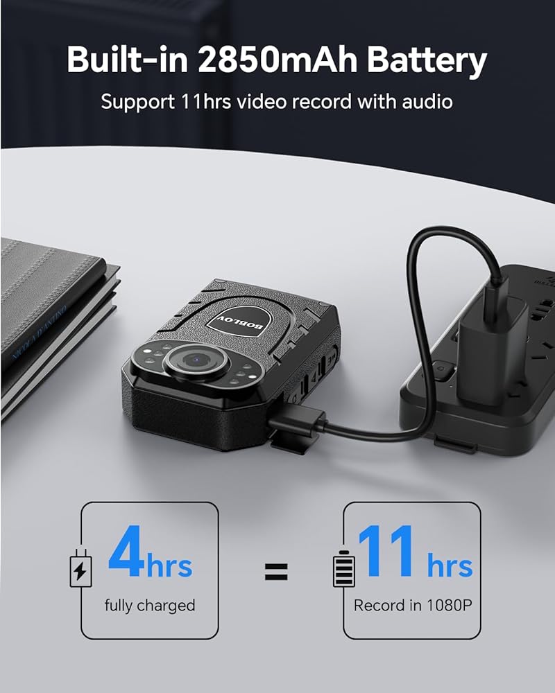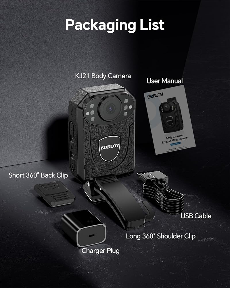 • كاميرا الجسم BOBLOV KJ21 مع الفيديو والصوت: التقط فيديو بدقة 2640x1296P/30 إطارًا في الثانية وصور بدقة 30 ميجابكسل. مثالية لإنفاذ القانون، والحماية، والتسليم، والدوريات، والتوجيه، وأكثر من ذلك. تسجيل عالي الوضوح للحظات والأدلة القيمة