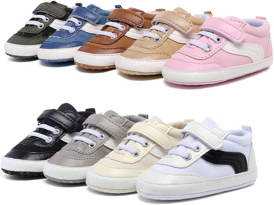 Description Item Type: First Walkers Crib Canvas Sneaker Color: Black,White,Blue,Grey, Season: Spring,Summer,Autumn,Winter Gender: Newborn Infant Toddler Baby Package includes: 1or2 pairs of shoes Size Reference: 1 inch=2.54 cm Note: Please choose the size by Sole Length, the age is just for reference. Note: 1.It is manual measurement, there may be 1-2 cm tolerance. Thanks for your. 2.The recommended age is just for your reference,Please measure your baby's foot length to choose the right size for your baby. 3.If you are satisfied with our products and service, we are appreciate for your 5 stars. Thanks in advance. 4.If you have any questions or feedback, pls don't hesitate to contact with us - we are 100% Guarantee to offer best service for all customers.