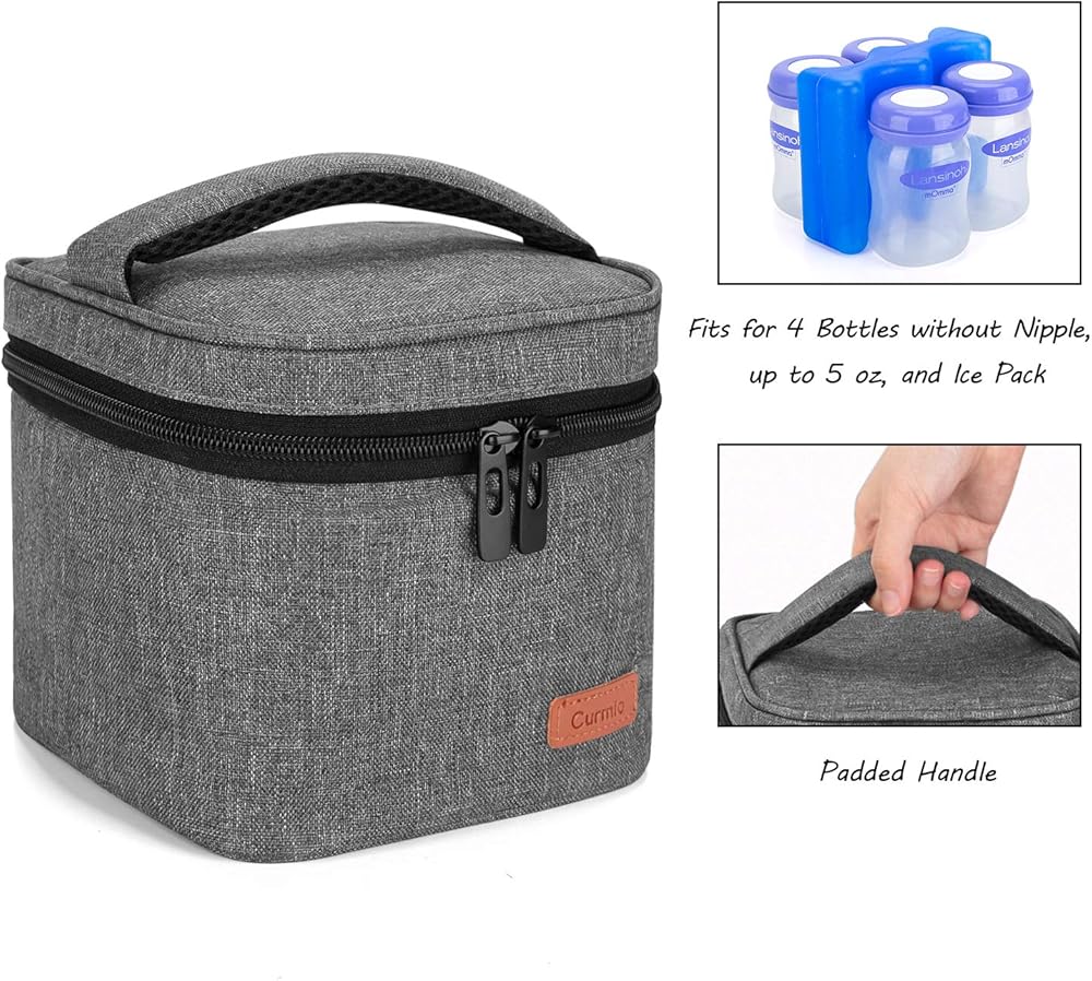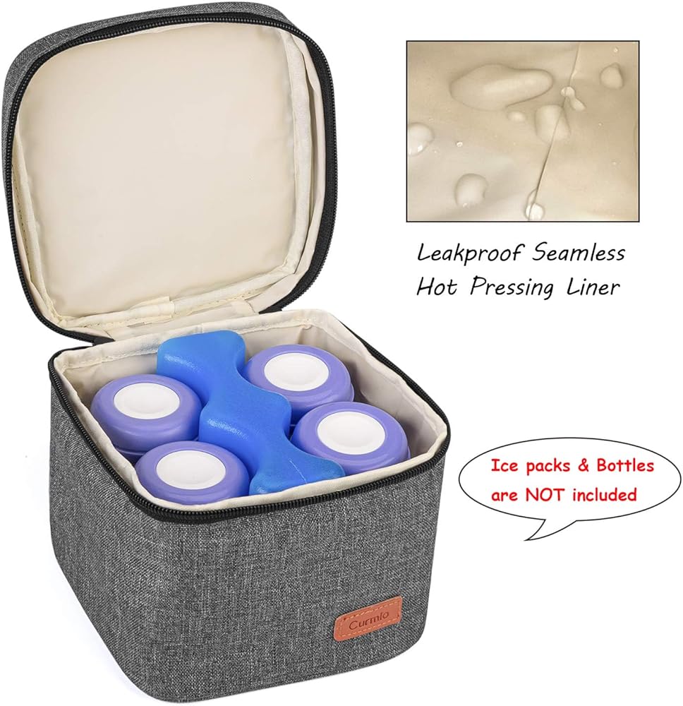 حقيبة تخزين حليب الأم من كورمو لـ 4 زجاجات يصل وزنها إلى 5 أونصة، حقيبة تبريد صغيرة معزولة لزجاجات الأطفال، جهاز تسخين الزجاجات أثناء التنقل للرعاية النهارية، حقيبة فقط، رمادي