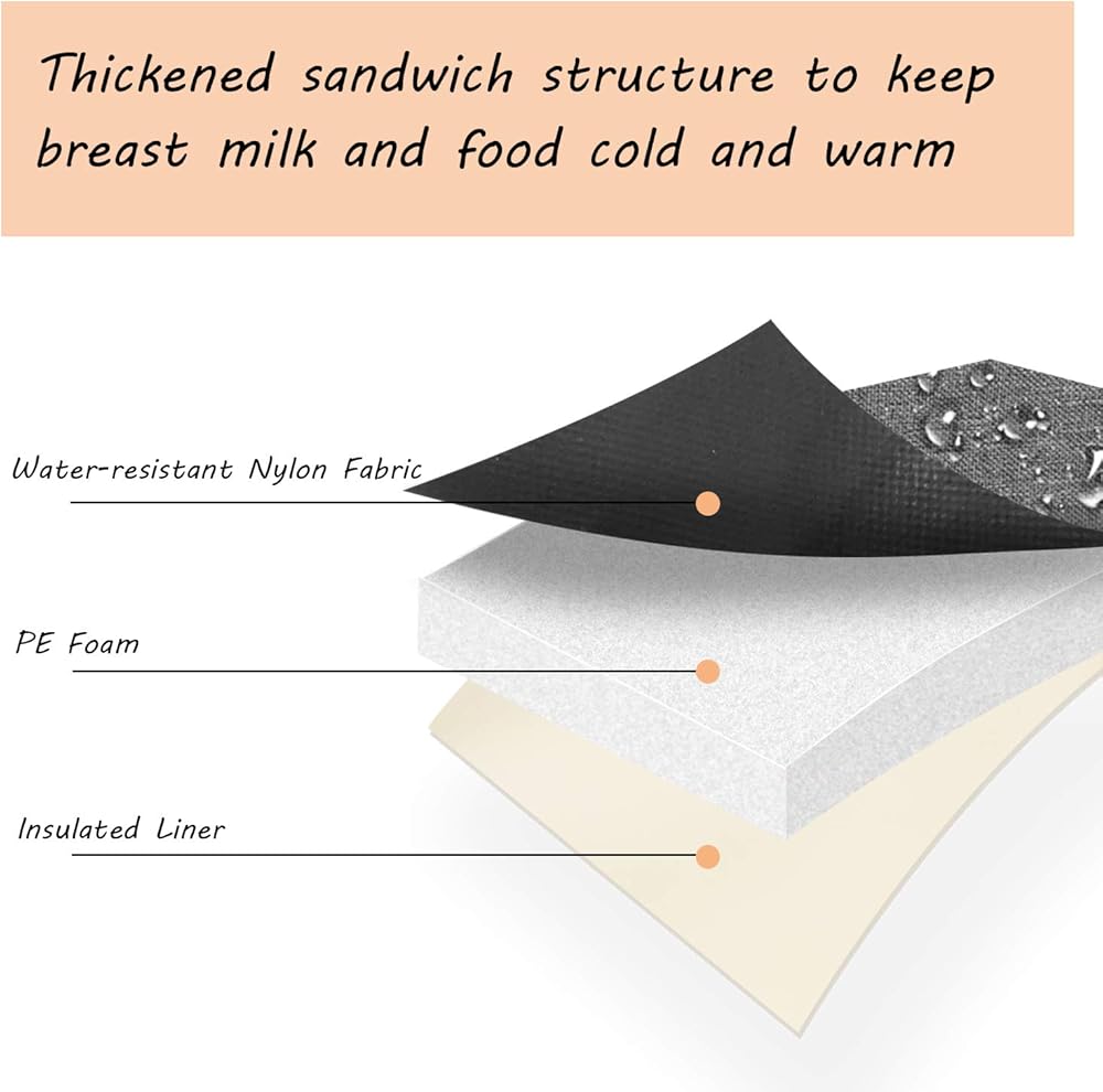 【بطانة معزولة】 مصنوعة من مادة النايلون الخارجية المقاومة للماء، وطبقة وسطى من إسفنج البولي إيثيلين وبطانة معزولة، سيحافظ هيكل الساندويتش السميك هذا على حليب الثدي أو الطعام باردًا أو دافئًا.