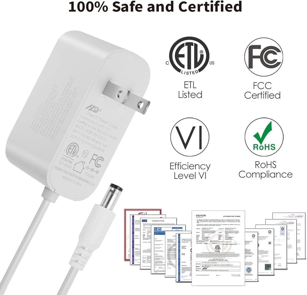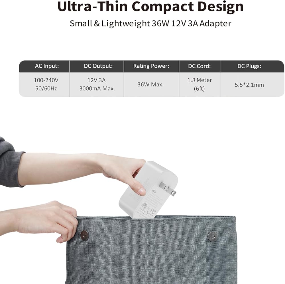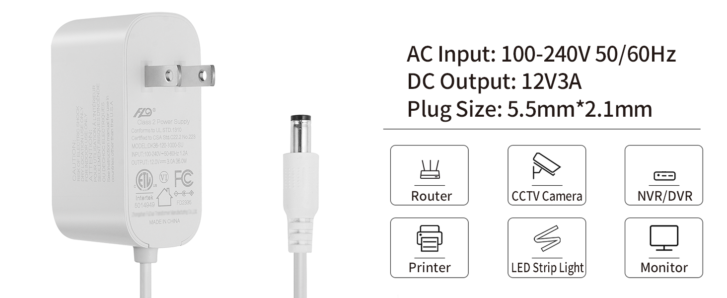 • حجم الموصل: 5.5 ملم × 2.1 ملم. الإدخال: 100 فولت-240 فولت 50/60 هرتز ؛ الإخراج: 12 فولت 3 أمبير.