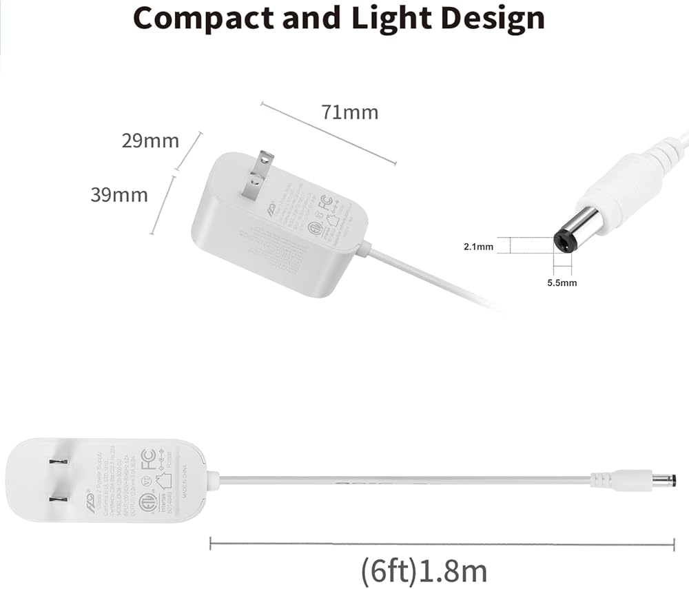• سلك طاقة طويل جدًا بتيار مستمر 12 فولت: يأتي محول الطاقة Lonnky AC/DC مع سلك بطول 6 أقدام (1.8 متر)، مما يمنحك المرونة لوضع أجهزتك أينما كنت في حاجة إليها. طول السلك طويل بما يكفي للاستخدام المقصود.