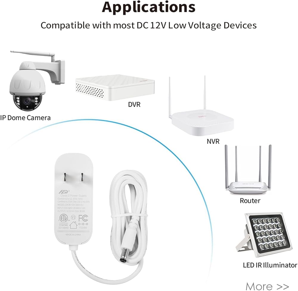 • محول طاقة 12 فولت مع أطراف تيار مستمر 5.5 مم × 2.1 مم سيلبي احتياجاتك من الطاقة بنسبة 90% للإلكترونيات المنزلية والمكتبية 12 فولت، مثل كاميرات CCTV، والبلوتوث المحمول، وأجهزة الاستقبال اللاسلكية، والألعاب الكهربائية، وأضواء الشريط LED، وأجهزة الألعاب، وعربات الأطفال ذات 4 عجلات، ونظام تحديد المواقع العالمي (GPS) ، مسجل فيديو رقمي، كاميرا ويب، مكبر صوت، كاميرا CCTV، هواتف Lan، محاور USB، مبرد الكمبيوتر المحمول، مكبر صوت خارجي، شاشة فيديو للأطفال، مروحة صغيرة، جهاز توجيه، طاولة Kindle Fire، صندوق القرص الصلب والمزيد من الأجهزة 12 فولت.