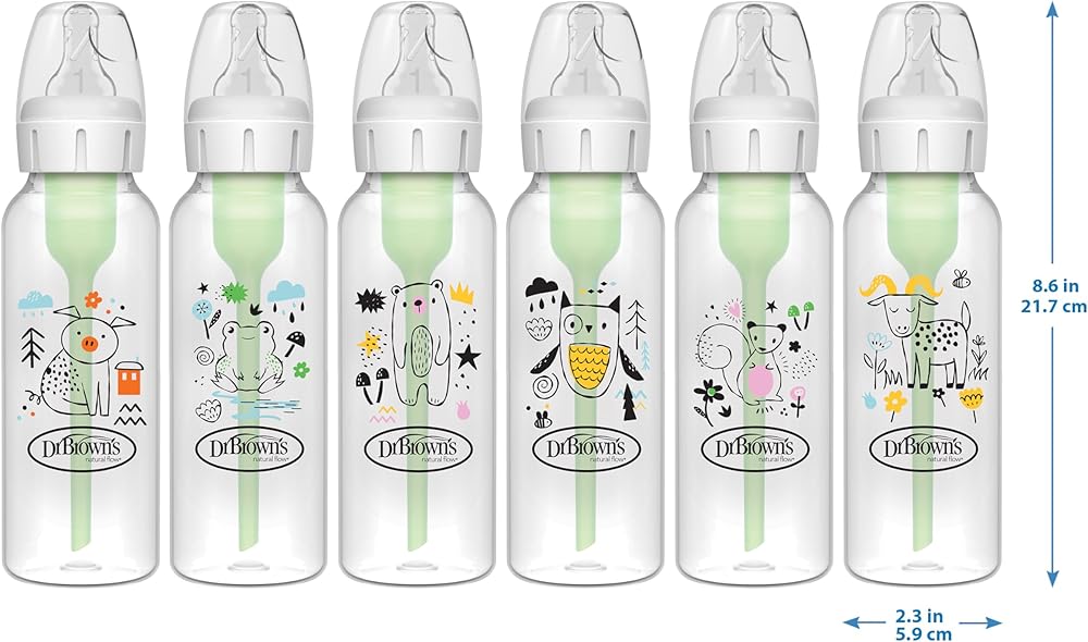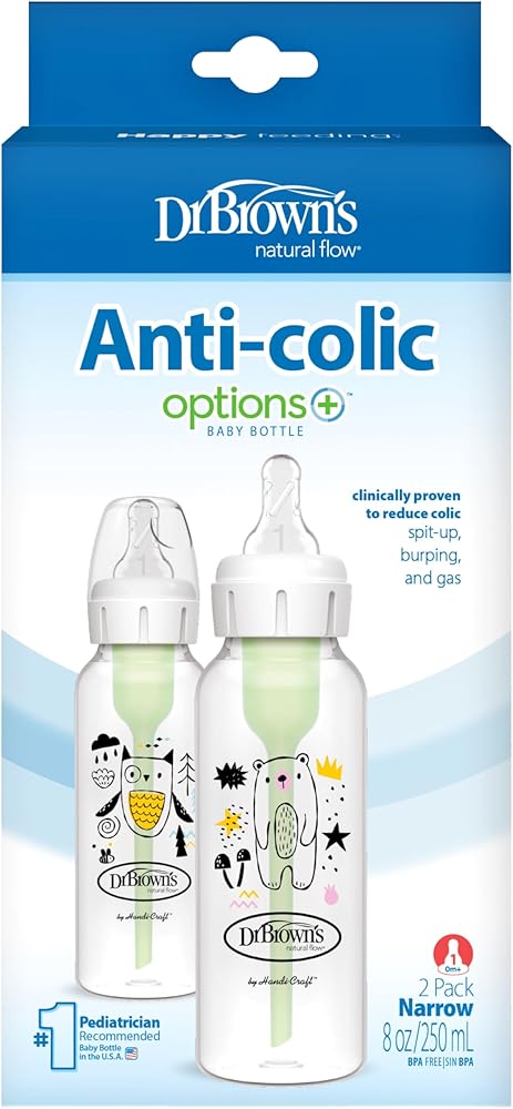 Your options have never been better with Dr. Brown's Natural Flow Anti-Colic Options+ Narrow Baby Bottle. The anti-colic internal vent system is clinically proven to reduce colic. Dr. Brown's bottles provide a more comfortable feeding experience for baby by decreasing spit-up, burping and gas. This vacuum-free feeding is closest to breastfeeding and Dr. Brown's silicone nipples provide a consistent flow so baby can feed at their own pace. The breast-like nipple shape encourages a proper latch for a more natural bottle feeding experience and eases the transition from breast to bottle and back again. Dr. Brown's vent system is proven to help preserve bottle milk nutrients and aids in digestion for a better night's sleep. The silicone nipple, together with the internal vent system, offer a reliable and trusted bottle feeding experience that makes Dr. Brown's the #1 Pediatrician Recommended Baby Bottle in the U.S.* Made to grow with baby, our bottle is designed to nourish through all of baby's feeding stages and is recyclable. Safe for use in dishwasher (top rack only), electric and microwave sterilizers or boiling water. BPA Free. *IQVIA Health ProVoice Survey 2022