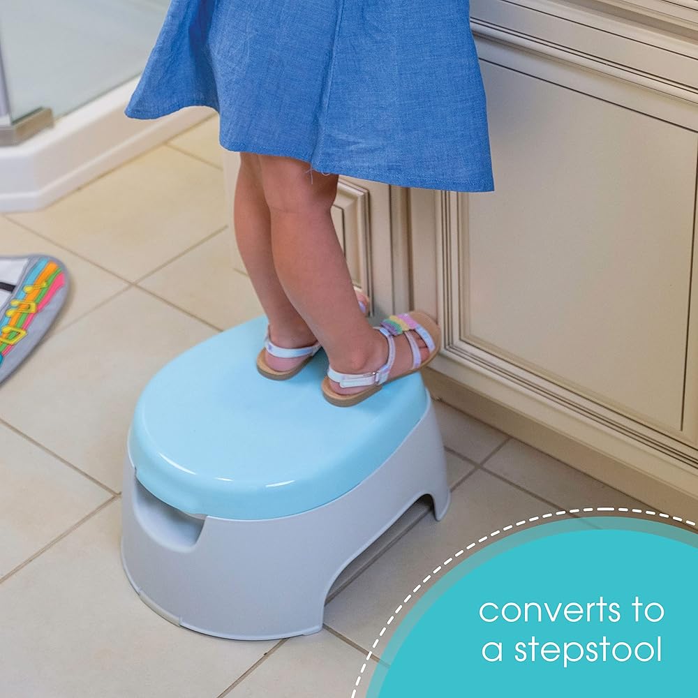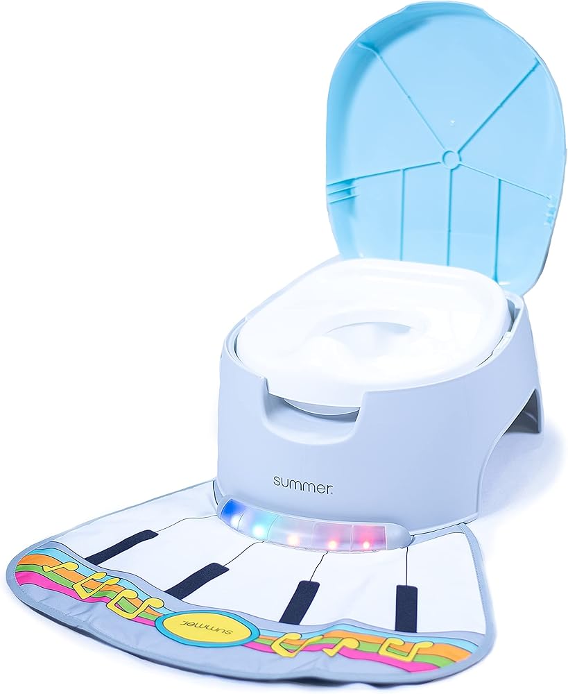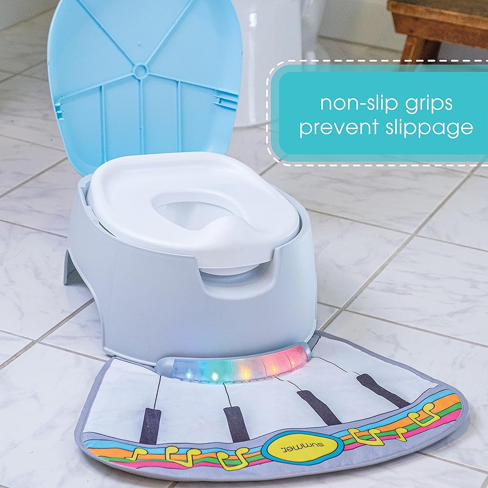 مرحاض التدريب على استخدام الحمام سيت آند بلاي 3 في 1 من سمر إنفانت، يتميز بساط قدم موسيقي تفاعلي، ووعاء قابل للإزالة وواقي من الرذاذ، رمادي/أزرق