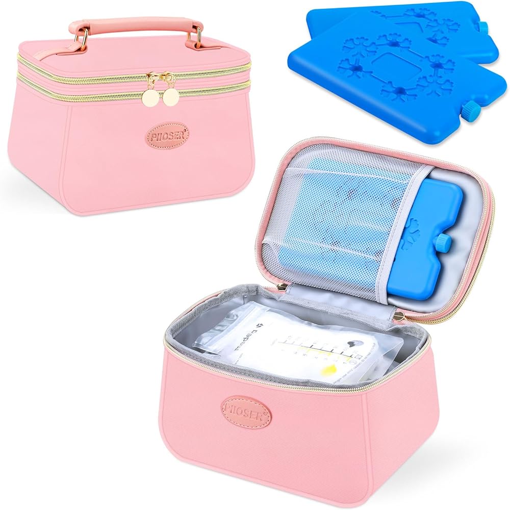 PIIOSER Breastmilk Cooler Bag with 2 Ice Pack, Fit 6 Breastmilk Storage Bags Up to 8Oz, Breast Milk Cooler Tote Travel Bag for Daycare and Breastfeeding Mom, Black