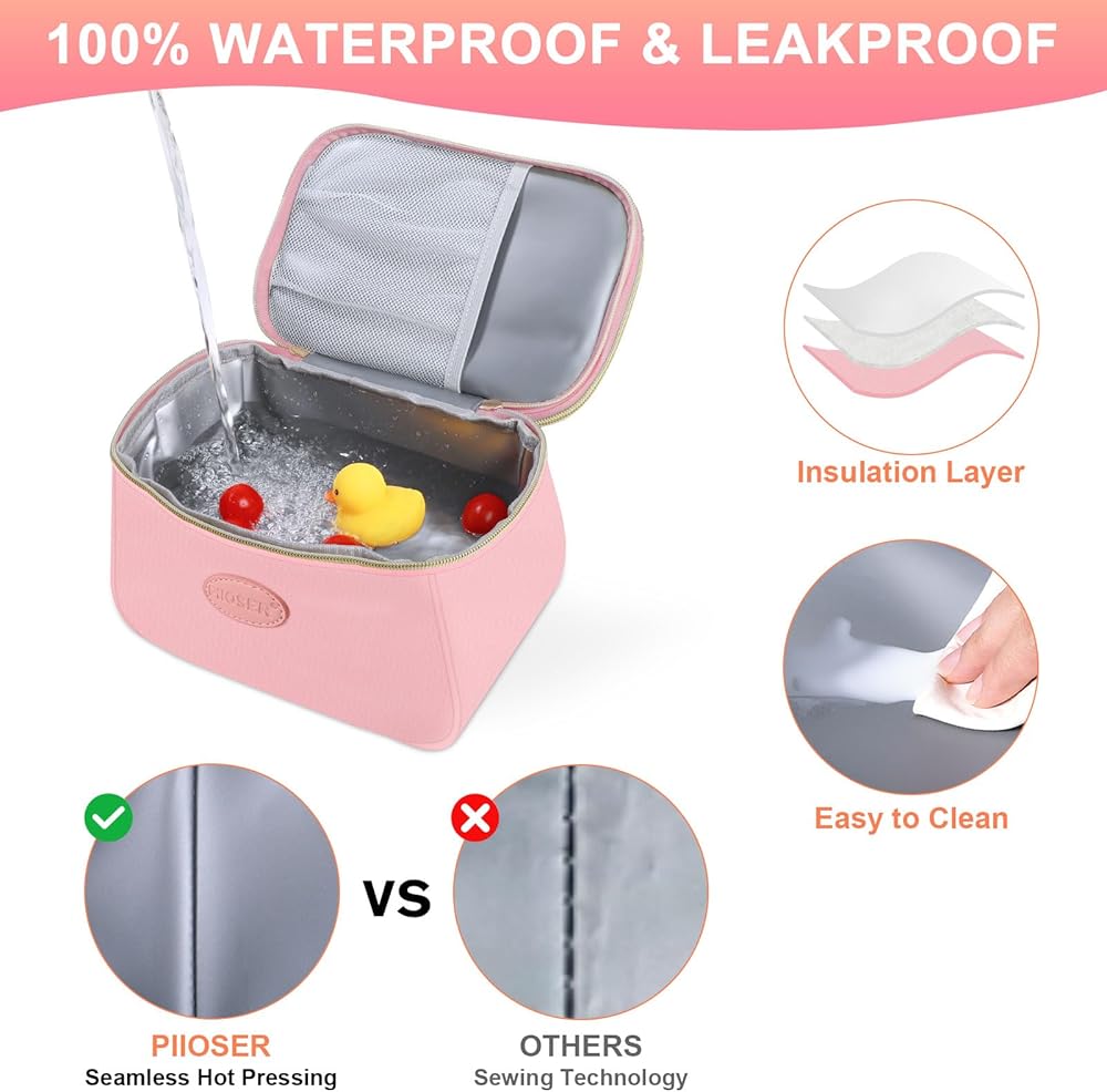 WATERPROOF & LEAKPROOF Bag: Our food-grade EVA insulated liner adopts hot-pressing technology for 100% waterproof and leak-proof, and 5mm thickened foam keeps cold for up to 6-8 hours(with 2 Ice Packs). It's easy to clean the water or milk stains and just need a towel or damp paper towel.