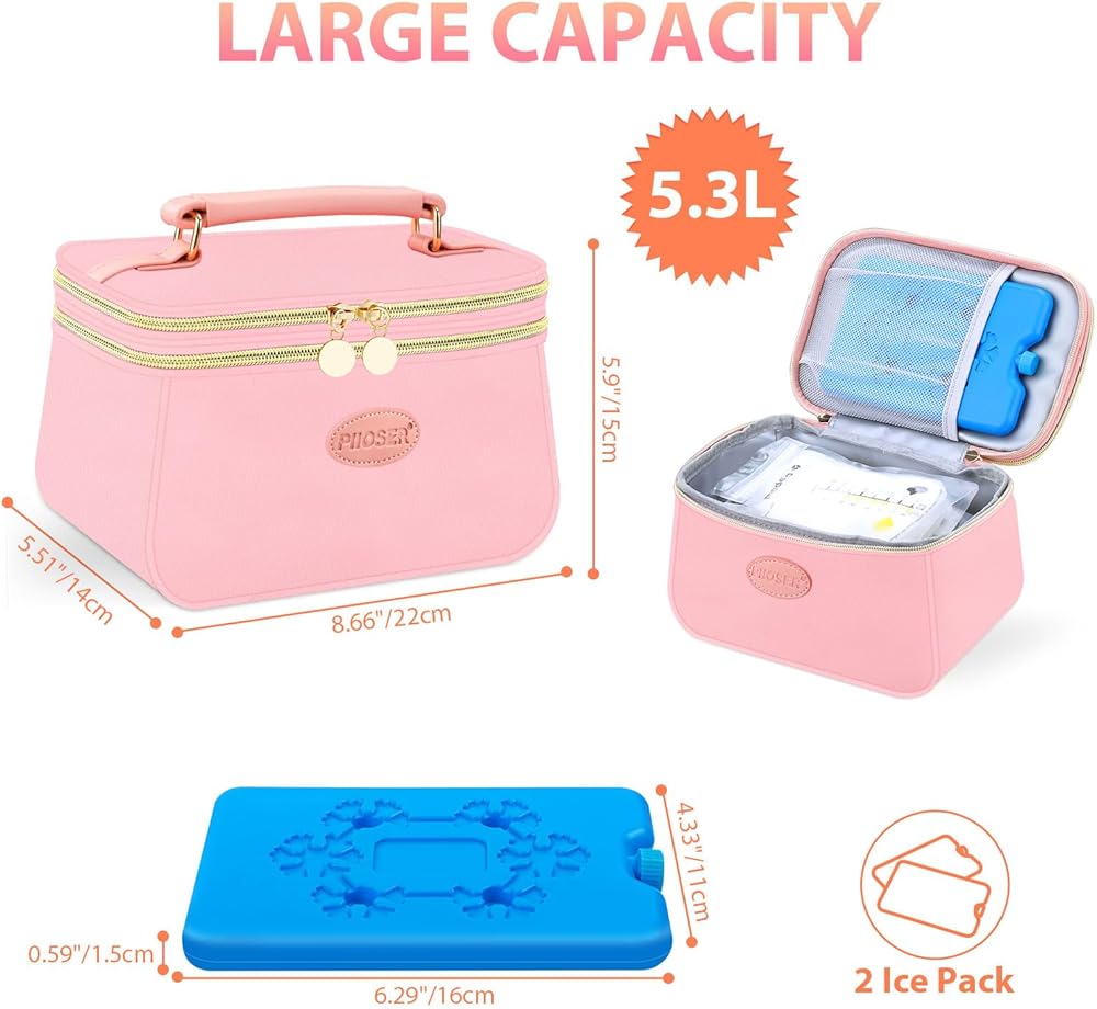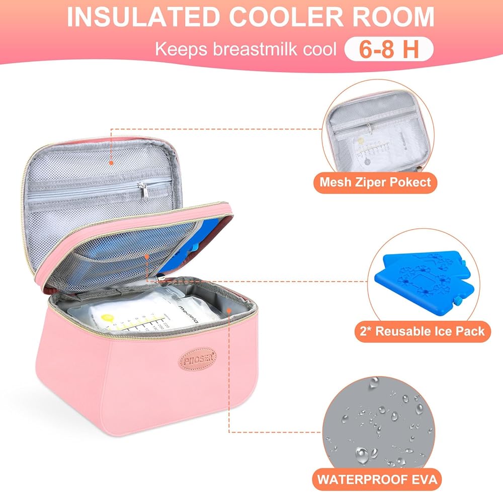 VERSATILE INSULATED COOLER BAG: Our breastmilk storage cooler bag with 2 ice packs, which is keep breastmilk/drinks/baby food pouches fresh for hours. And it can fits 6-8 breastmilk storage bags up to 8 ounces or fits 6 baby bottles up to 5oz.