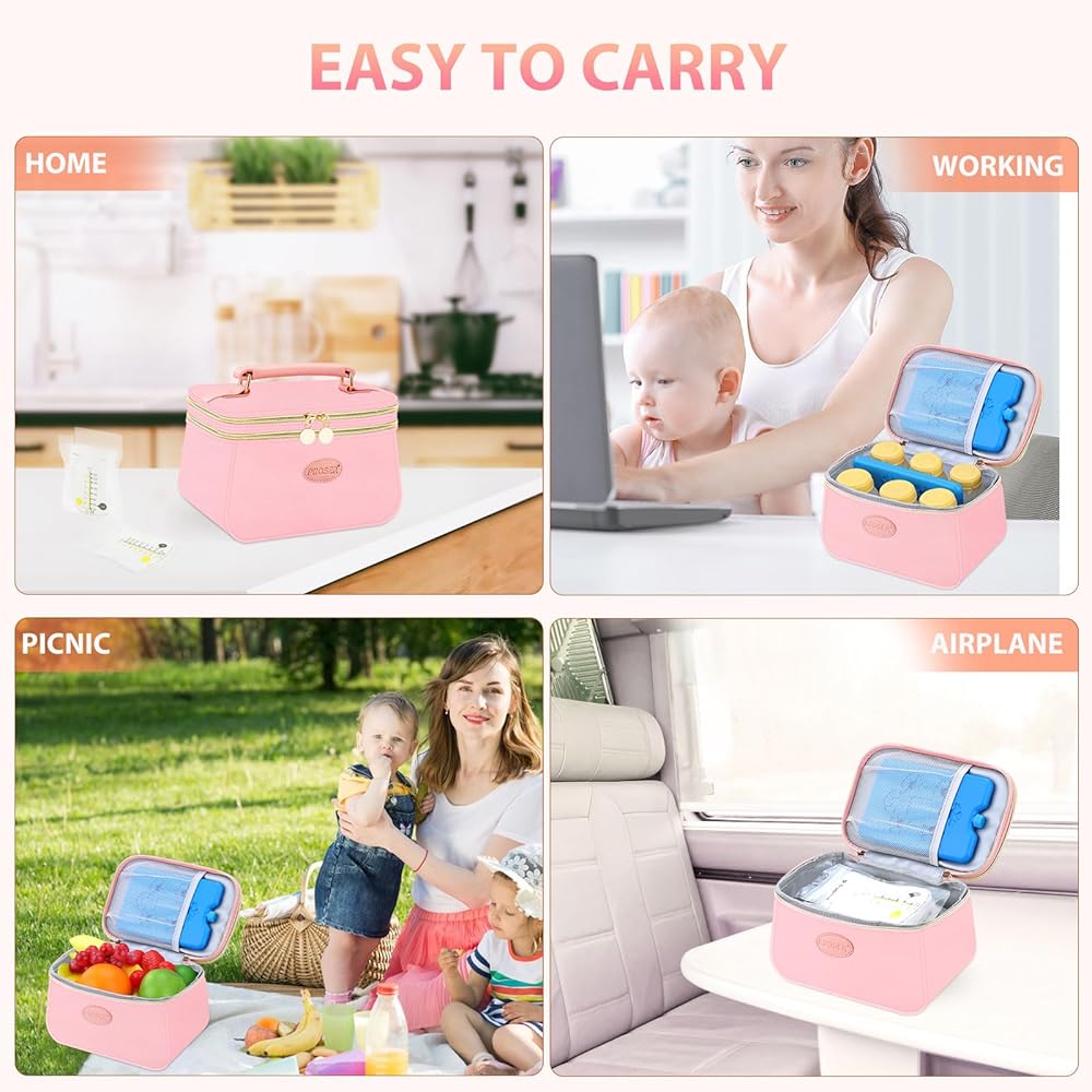 FRIENDLY ON-THE-GO COOLER BAG: Our cooler bag features a stylish PU tote design, making it easy to carry and convenient for transport while traveling, working, shopping, or picnic. Its compact size allows it to fit inside larger bags, such as a breast pump bag, a large travel diaper tote, or a diaper bag backpack.