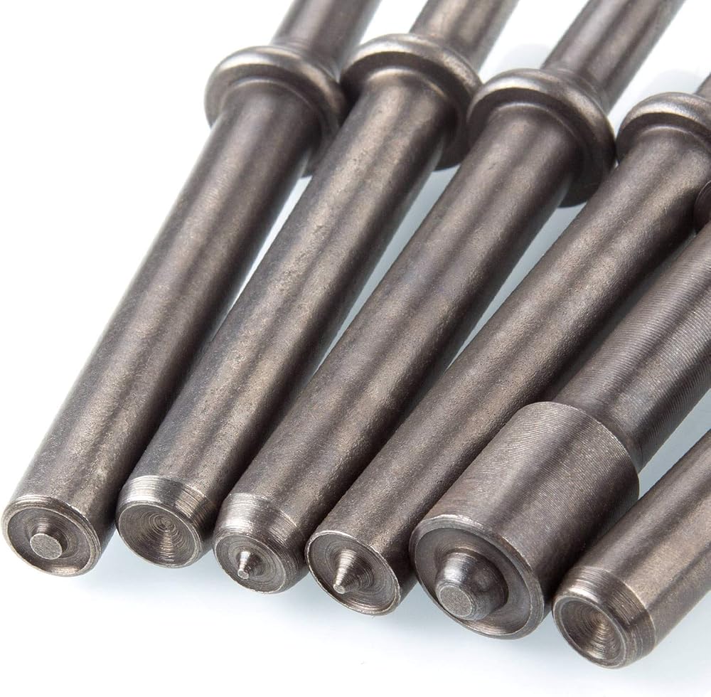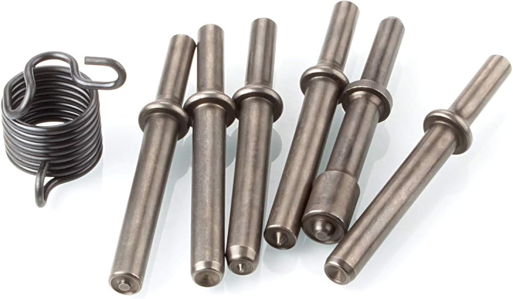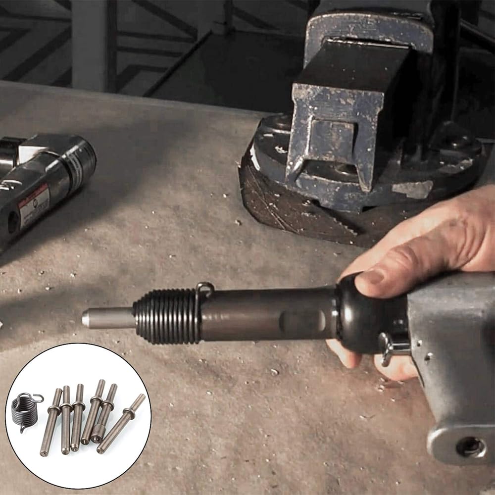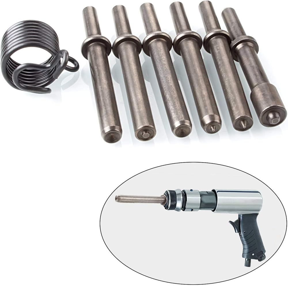 The pneumatic rivet tool bits set include 6 pcs air hammer rivet and 1pcs durable spring. With these chisel kit can your daily need be met
