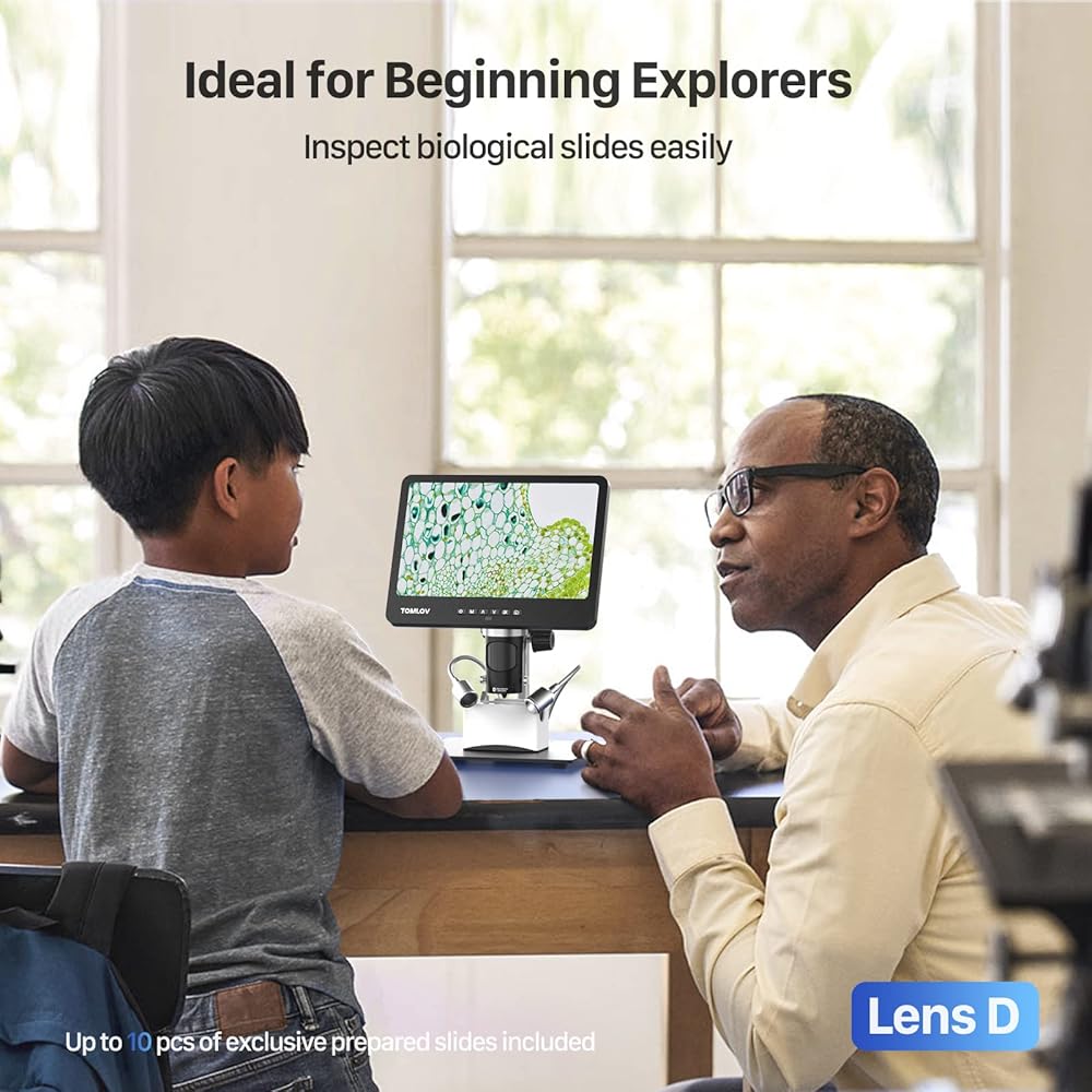 شاشة IPS ممتازة مقاس 10.1 بوصة: يوفر المجهر الرقمي TOMLOV مع شاشة IPS مقاس 10.1 بوصة ألوانًا زاهية وزاوية عرض 178 درجة، مما يضمن رؤية واضحة وسلسة دون ظلال أو تمزق، مما يجعله مثاليًا للمشاركة والاستخدام الممتد