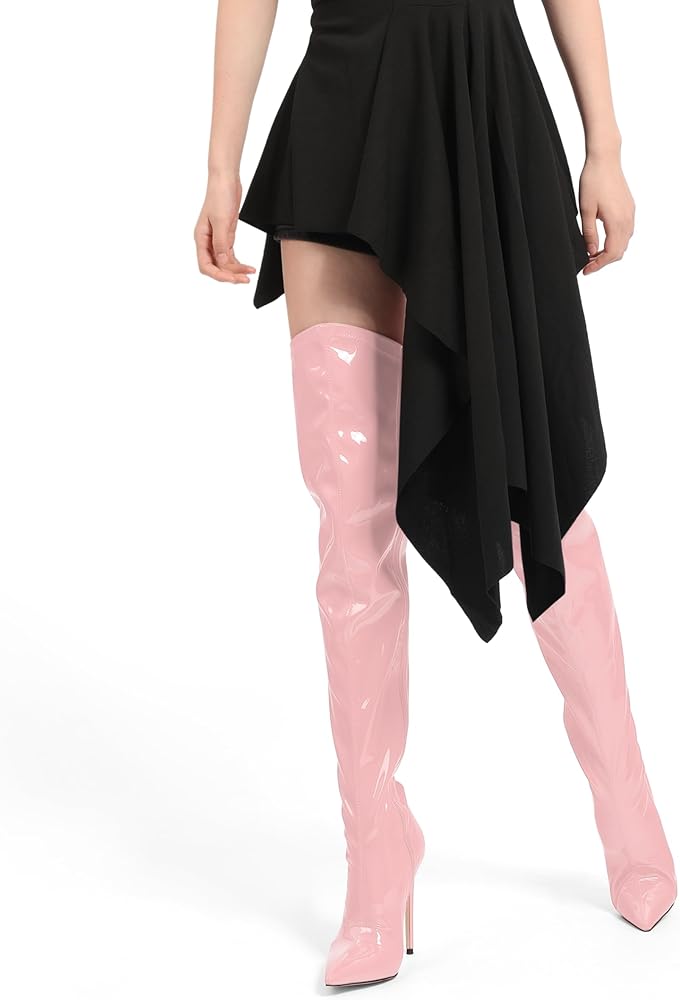 • تصميم مثير فوق الركبة: تتميز هذه الأحذية ذات الرقبة العالية بمقدمة مدببة وكعب عالٍ، والتي لا تعمل فقط على إطالة خط الساق للحصول على مظهر نحيف ولكنها تضيف أيضًا لمسة من الجاذبية الجذابة، مما يجعلها خيارًا عصريًا لفصلي الخريف والشتاء. خزانة الملابس.