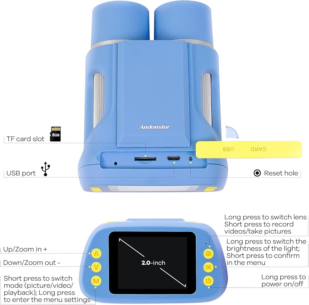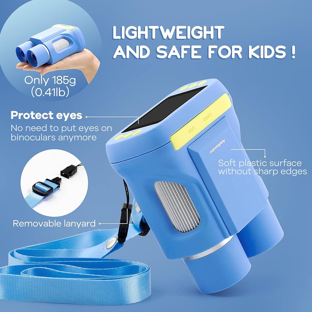 【مفهوم تصميم خفيف الوزن وآمن】يزن AD122 185 جرامًا فقط (0.41 رطل)، ويمكن للأطفال وضع منظارهم الصغير بسهولة في جيوبهم وأخذها للمغامرات الخارجية. كما أنه يختلف عن المناظير التقليدية، مع شاشة عرض مدمجة عالية الوضوح مقاس 2 بوصة، ولا يتطلب من الأطفال لصق وجوههم وعيونهم على أسطوانة العدسة لحماية عيون الأطفال وبشرتهم الحساسة. سطح المنتج أملس، بدون زوايا حادة، والحبل قابل للفصل.