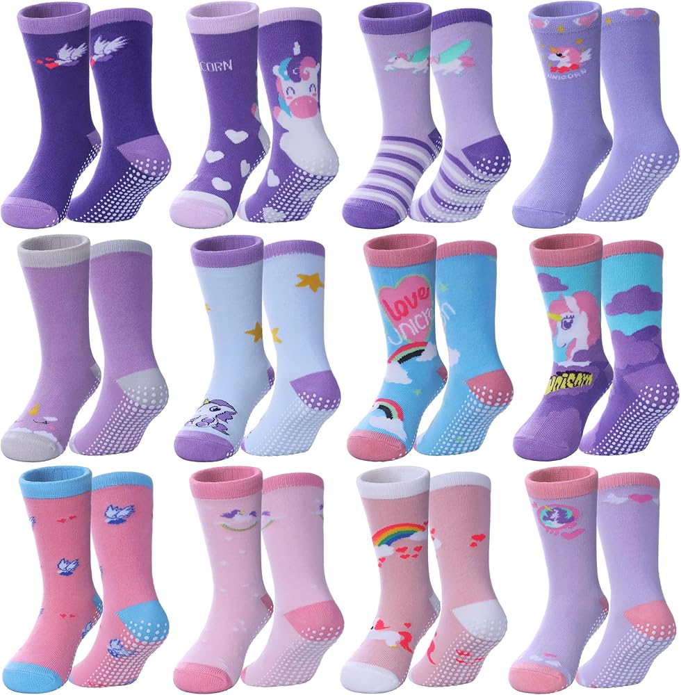 تصميم Adoranle المضحك المبتكر - 12 زوجًا من جوارب الأطفال الصغار بنمط كرتوني وألوان جديدة بسعر معقول جدًا. تضيف الألوان النابضة بالحياة لمسة من الحيوية إلى الأنماط، مما يجعل جوارب الأطفال المضادة للانزلاق هذه أكثر بريقًا واحتفالية. هذه الجوارب المضادة للانزلاق للفتيات الصغيرات يمكن أن تتماشى بسهولة مع ملابس متعددة. جميع جوارب الأطفال هذه ذات المقابض هي الألوان المفضلة لدى الفتيات.
