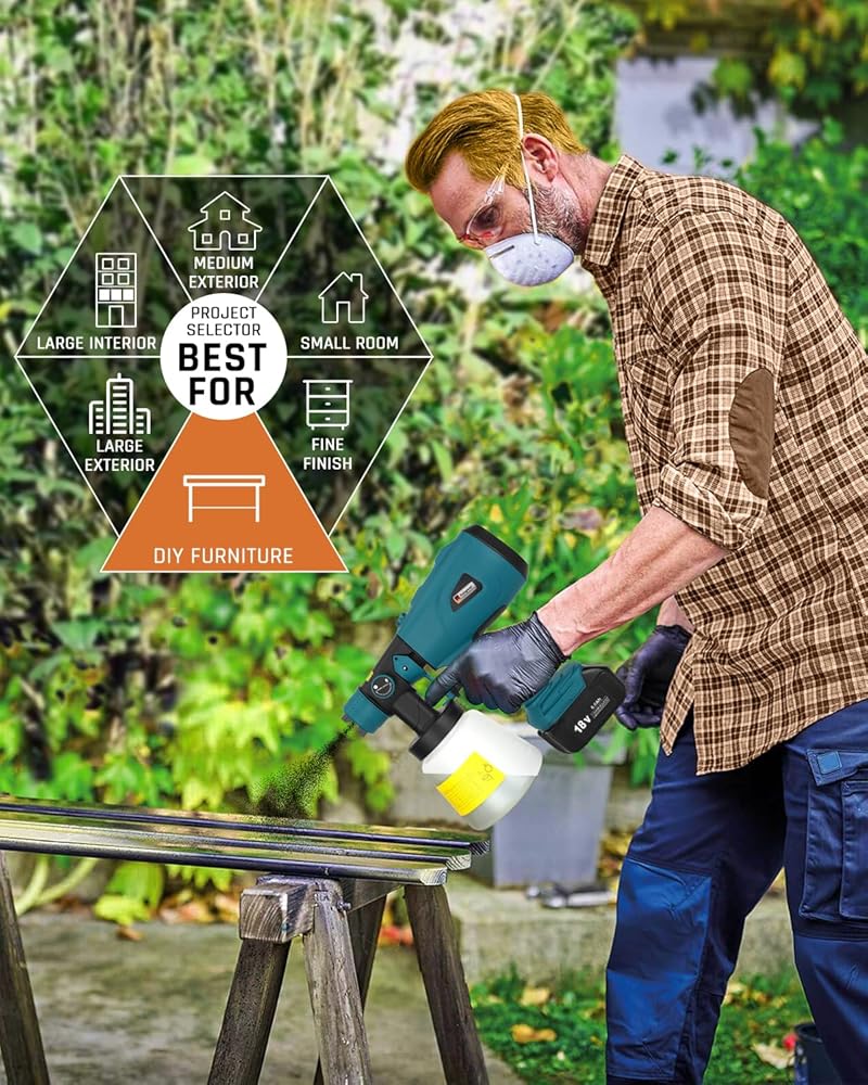 【تطبيقات متعددة الاستخدامات】- يتحرر بخاخ الطلاء اللاسلكي هذا من قيود أسلاك الطاقة، مما يتيح التشغيل الفعال وغير المقيد. يمكن استخدامه لمجموعة واسعة من المشاريع الداخلية والخارجية، بما في ذلك الخزانات والمركبات والجدران والأثاث والسور وتنقية الفورمالديهايد والأسوار والأسقف والحرف اليدوية والمواد الخشبية وغيرها.