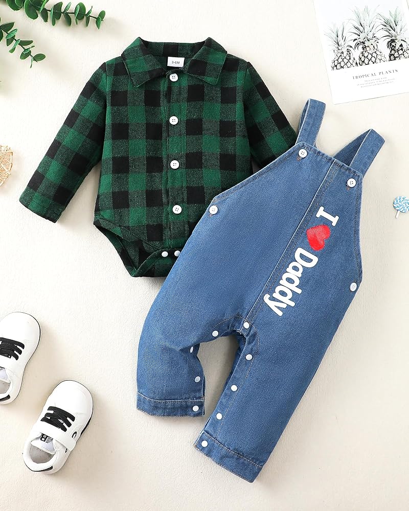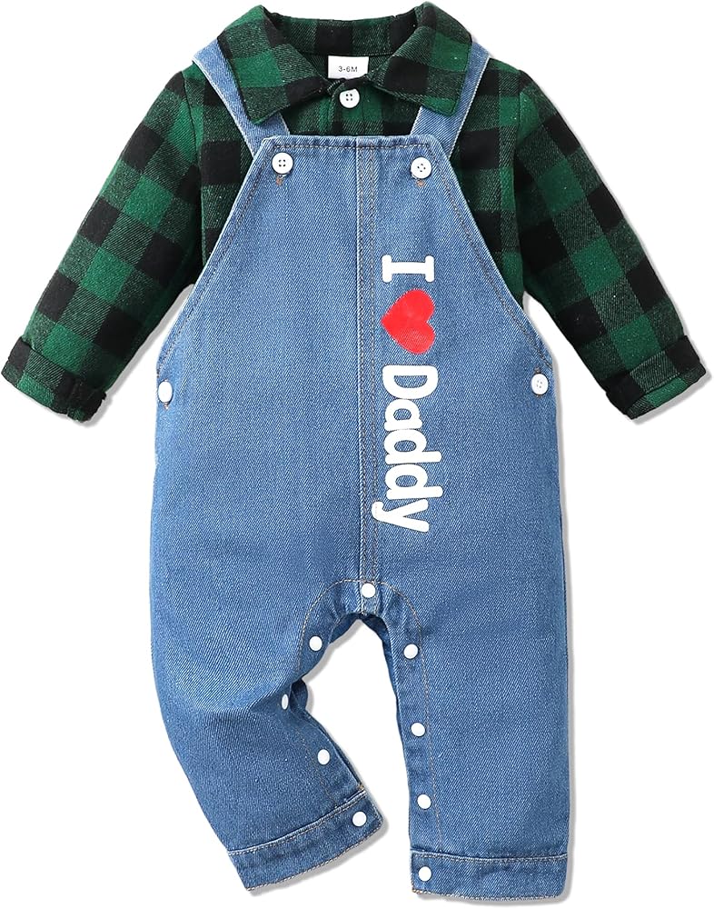 The baby boy 2pc jumpsuit outfits set includes a classic crew neck stripe romper with long sleeves for boys and matching cute cartoon animal denim jeans overalls.The outfits set is available in different styles:cute cartoons pattern like dog,bear and dinosaur,red plaid. The baby boy clothes is made of cotton blend fabric which is soft, friendly to the skin, comfortable and light weight to wear. Boys' fashion overalls suitable for 0-3 months baby boy clothes,3-6 months newborn boy outfits,6-12 months toddler boy clothes,12-18 month baby boy's jumpsuit clothing. These baby jumpsuits are extremely suitable for daily use,playtime dressing,casual occasions,school wear,vacation,outdoor picnics,Christmas, Halloween,and other special occasions.Moreover,this is also the finest choice as a birthday gift, baby shower gift,and so on.Purchasing this item of clothing for our baby is a judicious choice, enabling the child to pass through the spring,fall winter in comfort.