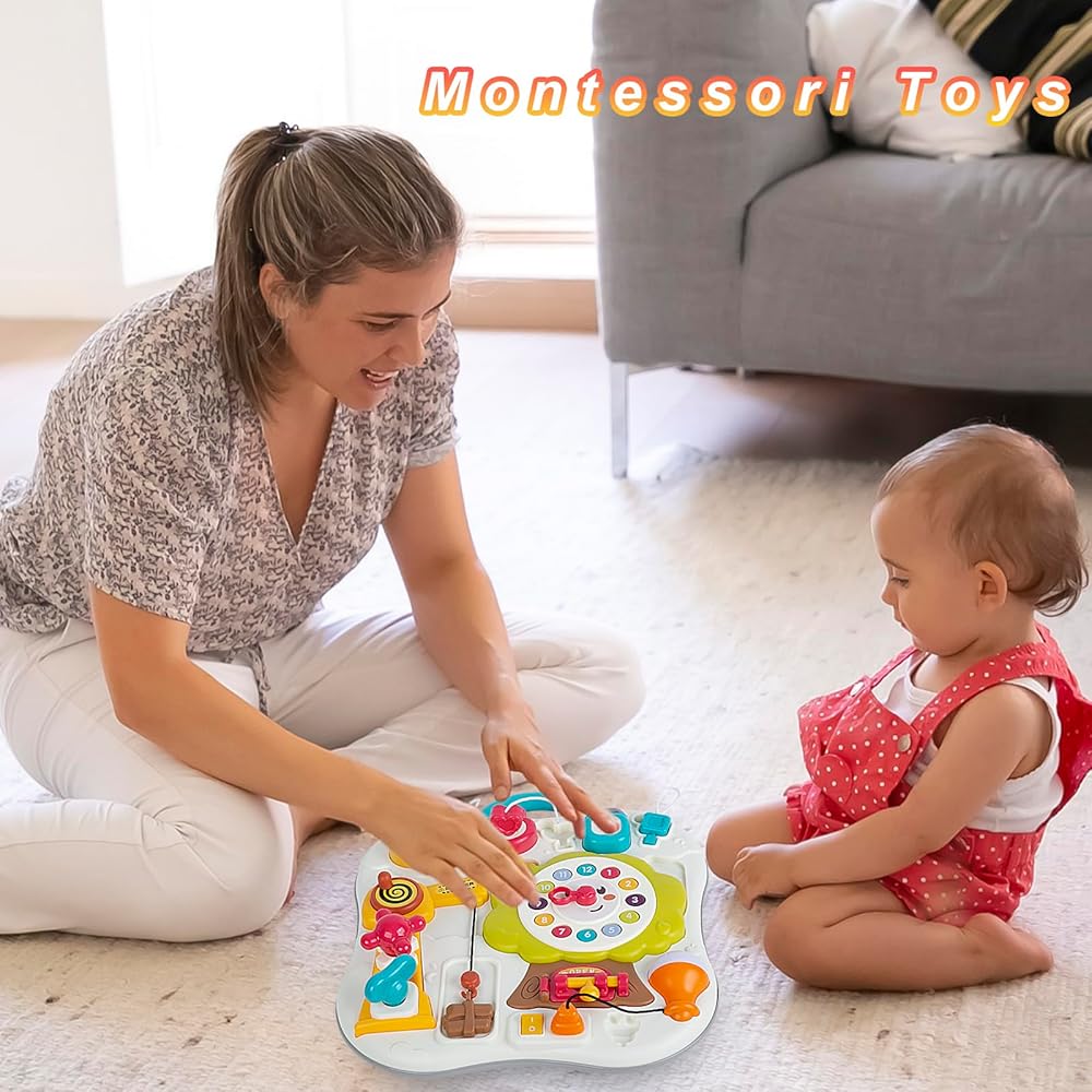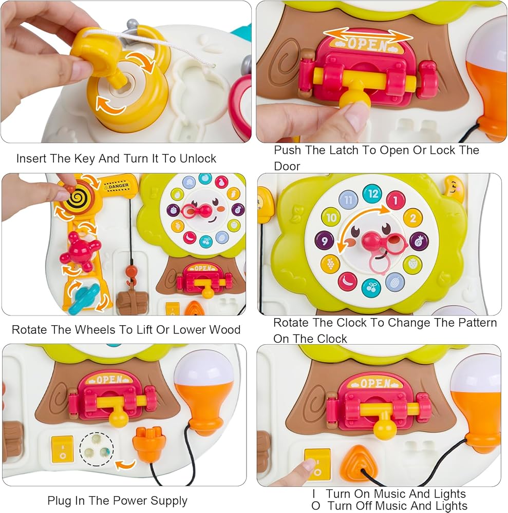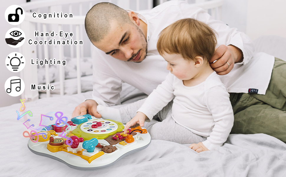 【لعبة مونتيسوري الموسيقية】أدخل قابس ضوء LED الموجود على لعبة اللوحة المشغولة في المقبس واضغط على المفتاح. يمكنها تشغيل العديد من أغاني الأطفال المبهجة، مما يجذب انتباه الأطفال الفضوليين بشكل كبير ويخلق جوًا سعيدًا لطفلك. ألعاب الأطفال الصغار من عمر 1-2 سنة تساعد الأطفال على تطوير التنوير الموسيقي والإدراك الحسي، وتدريب التنسيق بين اليد والعين لدى الأطفال والمهارات الحركية الدقيقة.