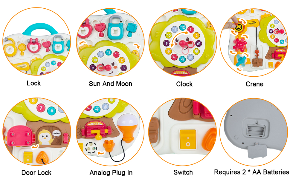 【تشجع الأطفال على الاستكشاف】 تم تصميم لعبة اللوحة المزدحمة الملونة هذه خصيصًا لتلبية رغبة الطفل في الاستكشاف. تحتوي على أضواء LED، وساعة، ورافعة، ومسامير أبواب، وأقفال مفاتيح، وما إلى ذلك. إنها تلبي بشكل كبير فضول الطفل واحتياجات الاستكشاف للحياة المحيطة. تعتبر لعبة مونتيسوري الفريدة هذه هدية للأطفال بعمر 12 شهرًا وعنصرًا أساسيًا لطفلك لاستكشاف العالم بحرية.