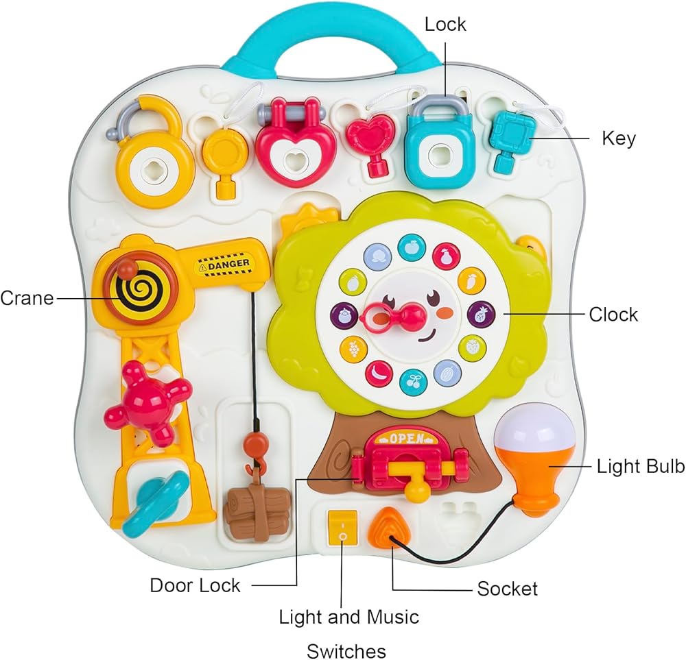 【هدية رائعة للأطفال】 تحتوي هذه اللوحة المزدحمة على مقبض ويمكن أخذها إلى أي مكان. ألعاب الأنشطة التعليمية لمرحلة ما قبل المدرسة تجعلها اختيارًا ممتازًا كهدية للأطفال في أعياد الميلاد والكريسماس وعيد الشكر وما إلى ذلك. لعبة موسيقية خاصة للأطفال الصغار الذين تتراوح أعمارهم بين 1 إلى 3 سنوات، لعبة مونتيسوري للأطفال الذين تتراوح أعمارهم بين 6 إلى 12 شهرًا، لوحة مشغولة لمدة عام واحد. - الأطفال الكبار، ولعبة المهارات الحركية الدقيقة للأطفال بعمر سنتين.