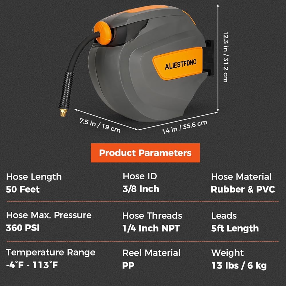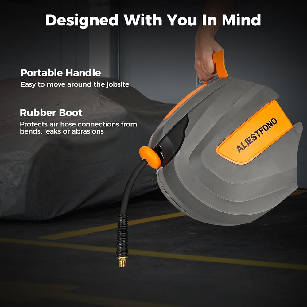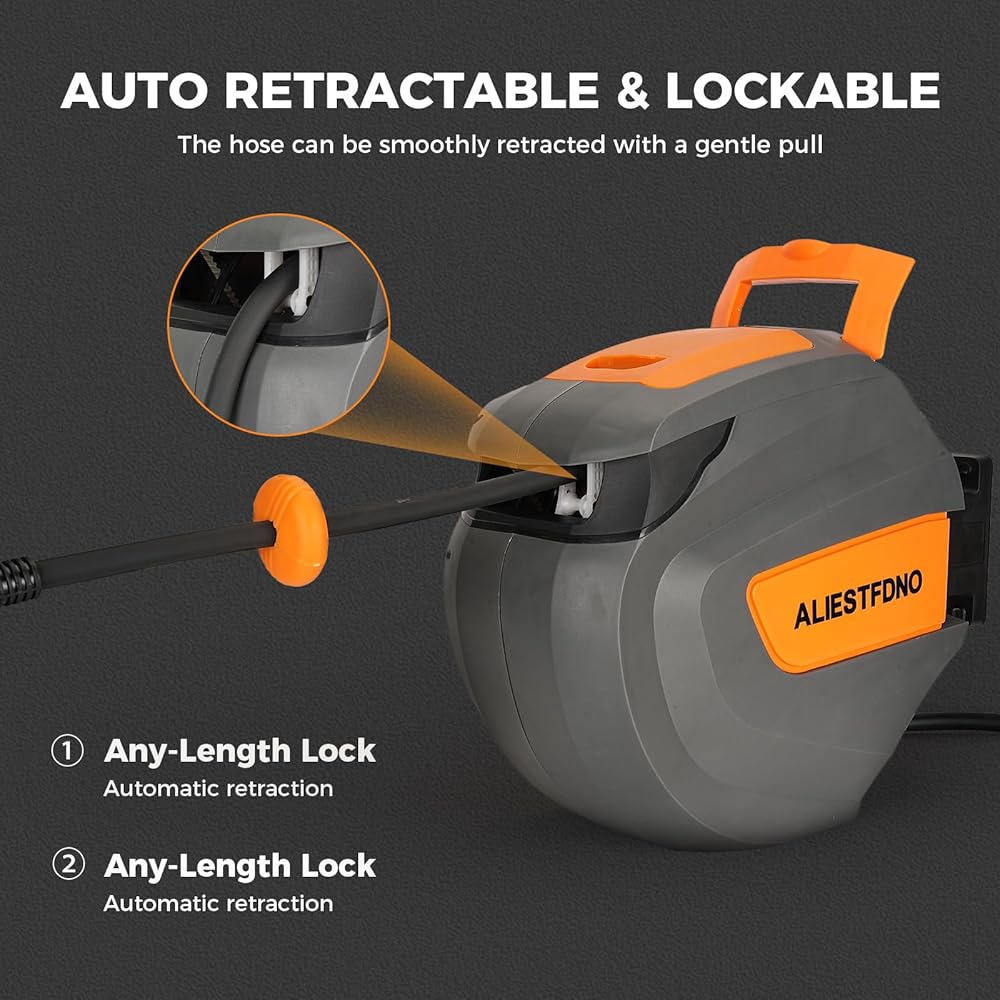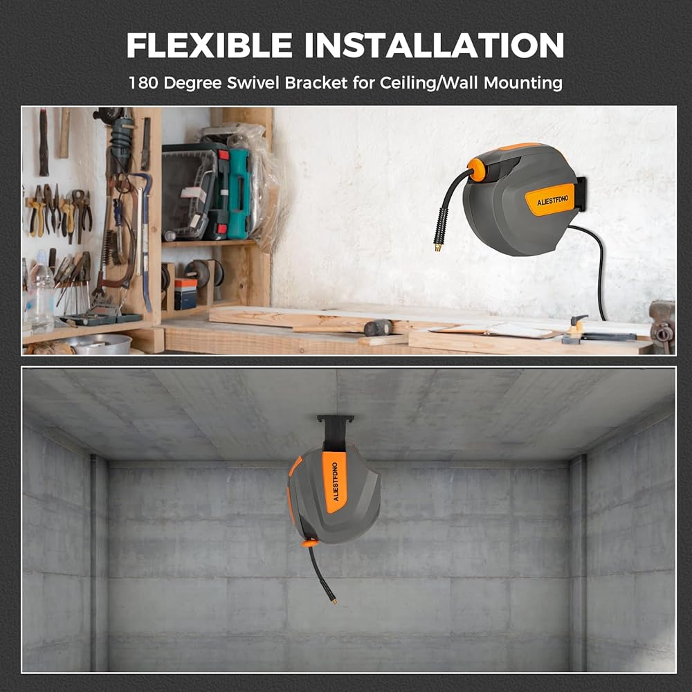 【قفل مثبت بأي طول】: قمنا بترقية الهيكل المستقل التقليدي إلى هيكل متكامل أكثر موثوقية، والذي يمكن أن يطيل عمر خدمة بكرة خرطوم الهواء 3/8 بنسبة تصل إلى 30%، مما يمنحك راحة البال والثبات المتصور. .