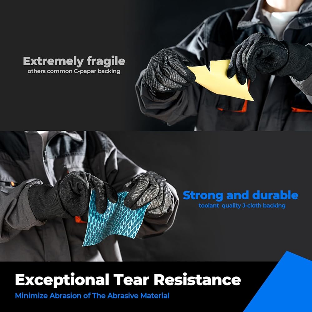 【عمر طويل جدًا】مقارنة بأقراص دعم الورق C من العلامات التجارية الأخرى، تزيد دعامة القماش عالية التحمل من قوة مقاومة التمزق 6 مرات ويمكن أن تقلل من تآكل المواد الكاشطة.