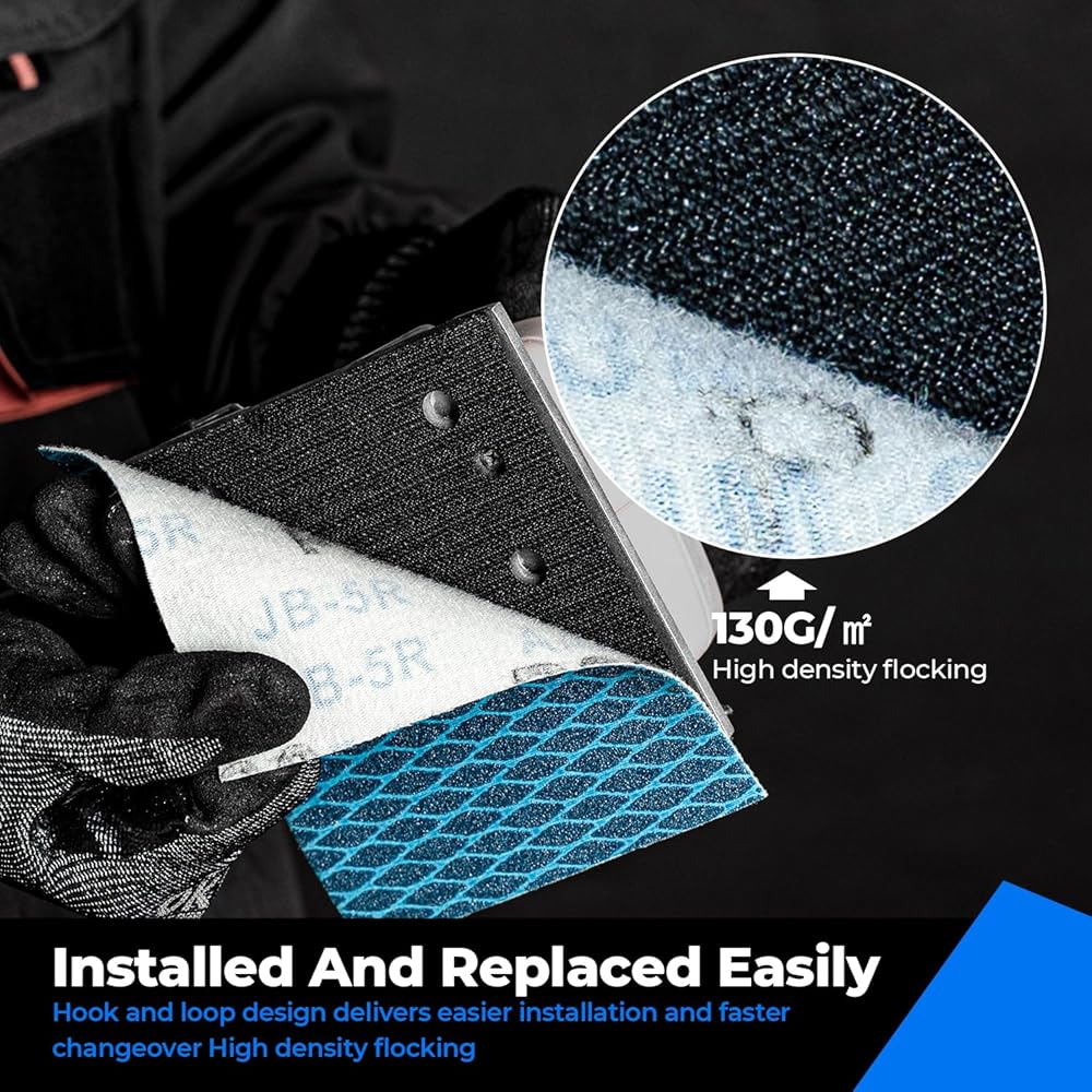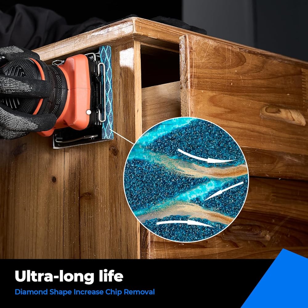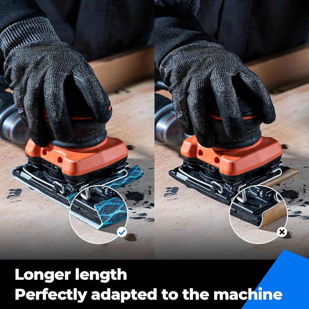 【حجم أطول】حجم ورق الصنفرة 1/4 ورقة أطول من العلامات التجارية الأخرى، مما يتجنب بشكل فعال مشكلة أن الورقة المقطوعة مسبقًا ليست طويلة بما فيه الكفاية ولا يمكن تثبيتها على الجهاز.