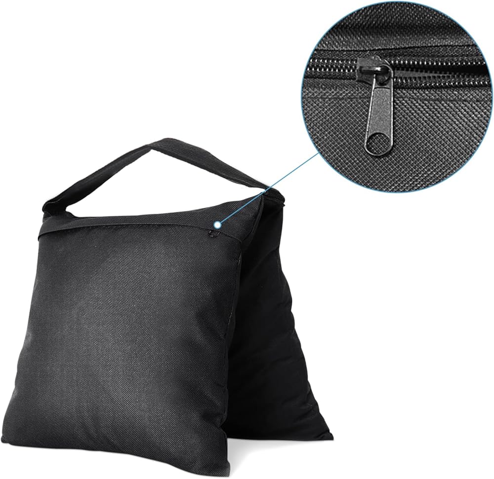 أكياس الرمل شديدة التحمل: يمكن استخدام أكياس الرمل شديدة التحمل لتثبيت حوامل الخلفية، ومجموعات الصور، ومجموعات الأفلام، وحوامل الإضاءة، وحامل C ويمكن استخدامها أيضًا لإصلاح شبكات البيسبول.