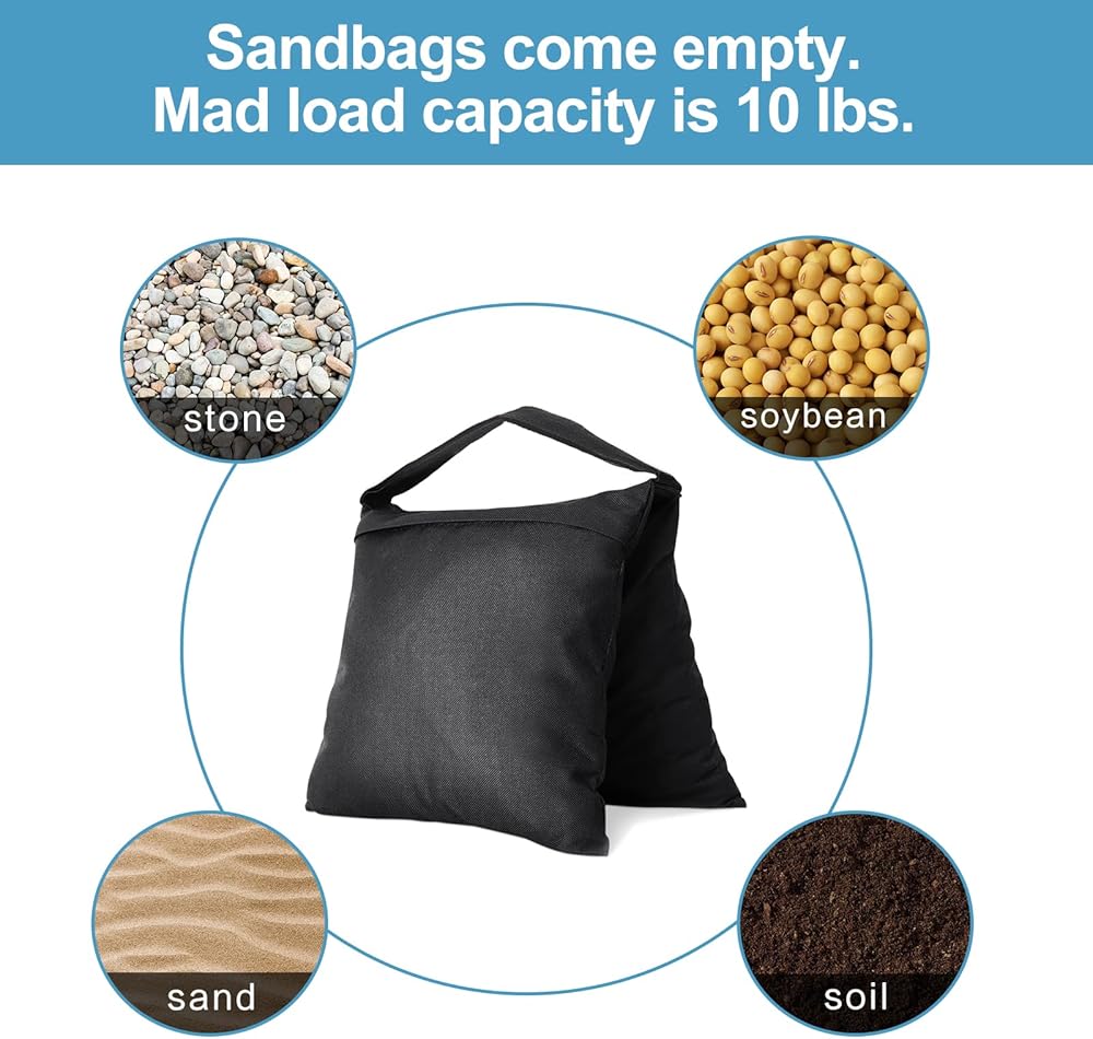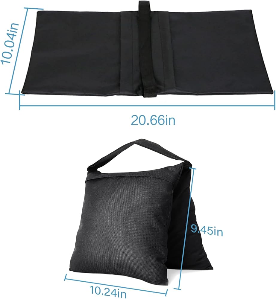 أكياس رمل سهلة الاستخدام: لا تحتاج إلى أي خطافات ويتم تعليقها مباشرة للاستخدام بفضل أحزمة الإبزيم. (ملاحظات: تأتي أكياس الرمل فارغة وتملأ فقط الرمل أو الحصى أو الصخور الصغيرة أو الحشوات الأخرى.)