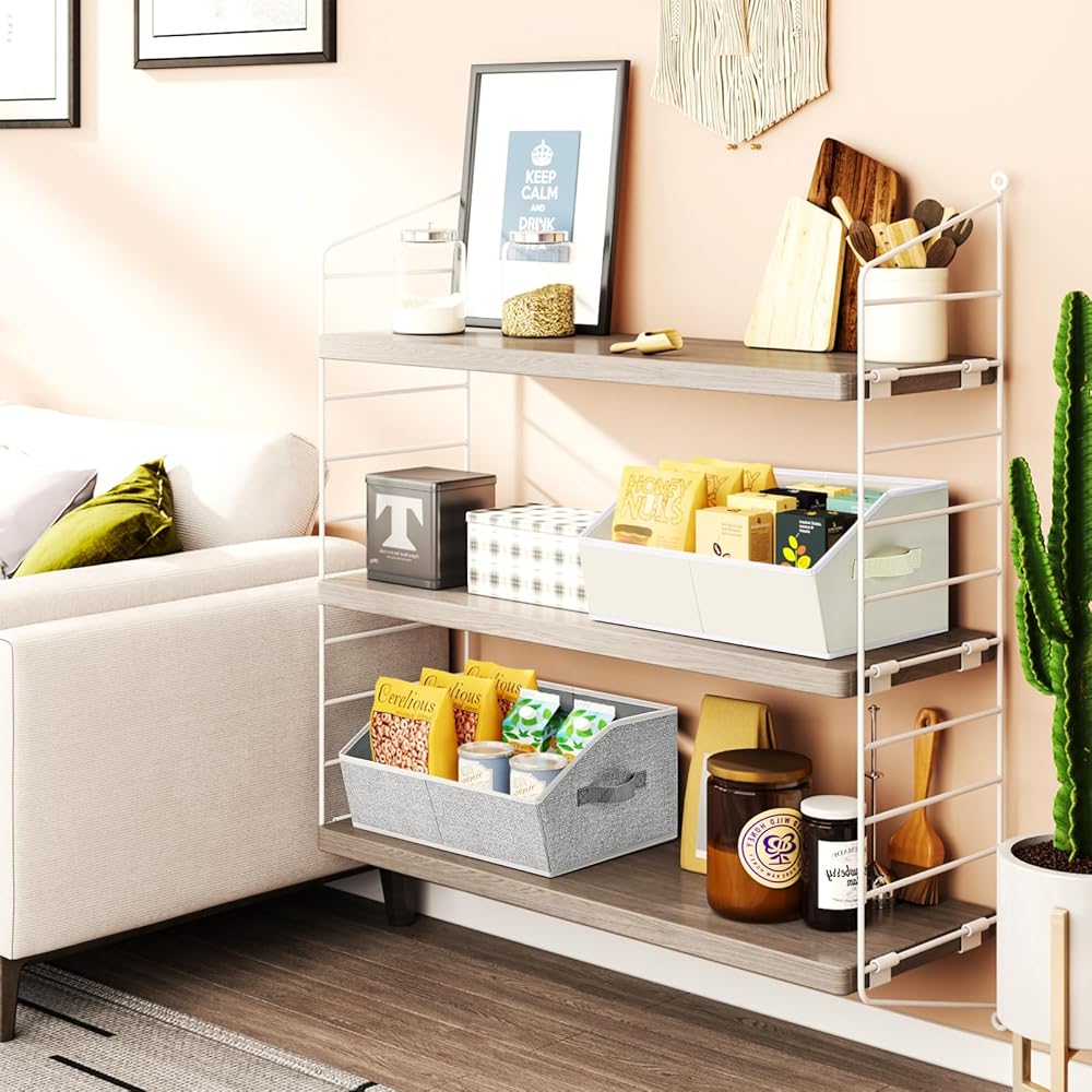 【سعة كبيرة مدروسة】هل تحتاج إلى مساحة تخزين أكبر؟ تحتوي صناديق الخزانة الخاصة بحجم الرفوف على المزيد من العناصر، مقاس 16.5 × 11 × 4.7 بوصة، وهي بمثابة "مساعد" رائع. من الملابس والمناشف إلى اللوازم المكتبية، تحمل سلال خزانة DIMJ كل شيء بسهولة.