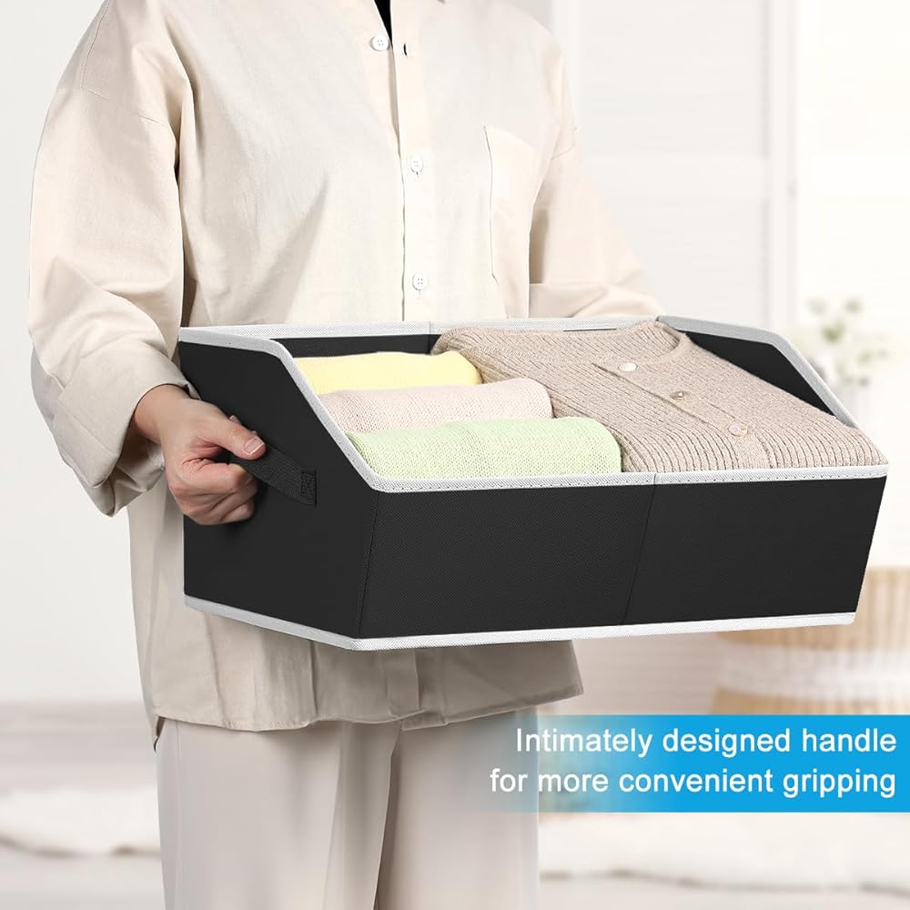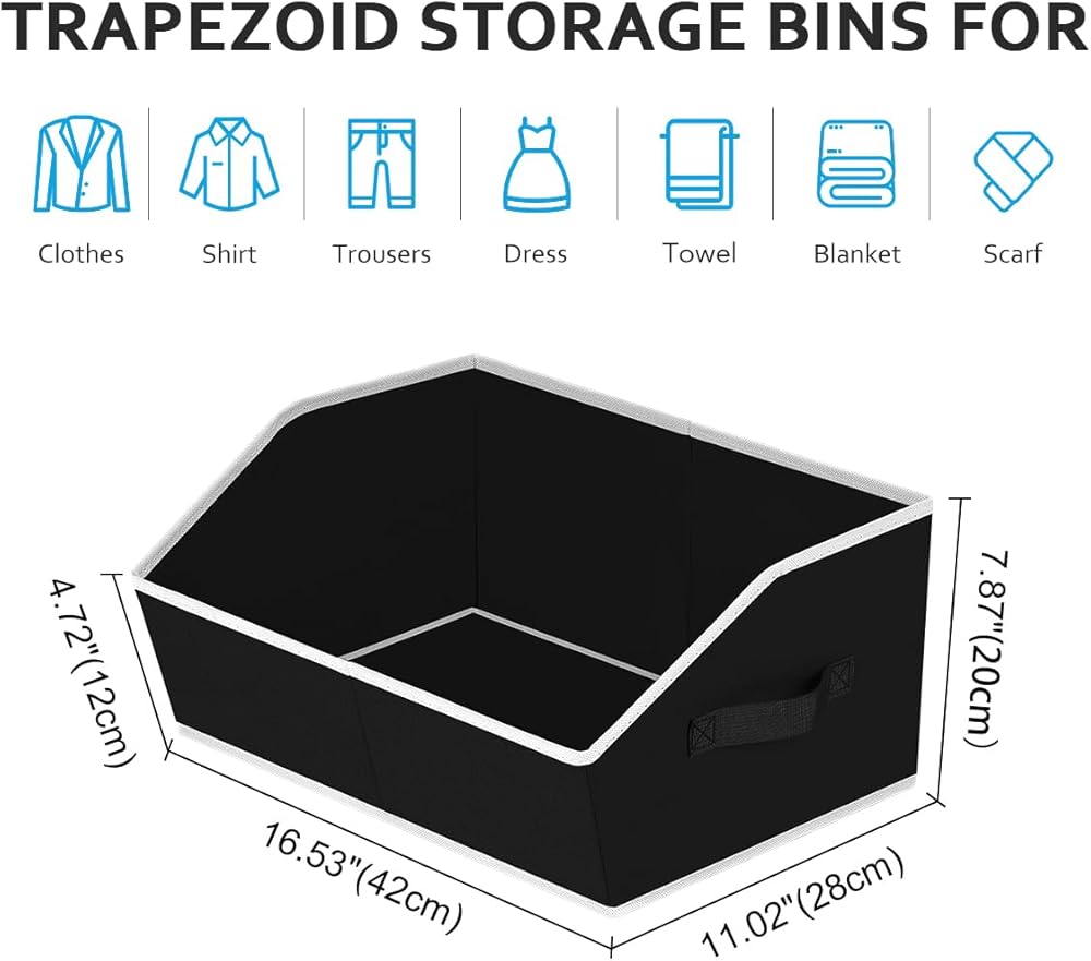 【تصميم شبه منحرف مبتكر】قل وداعًا لمتاعب البحث في مساحة التخزين المزدحمة باستخدام صناديق تخزين القماش. تضمن صناديق التخزين شبه المنحرفة الخاصة بنا إمكانية رؤية ما يوجد في صناديقك بسهولة للتنظيم، مما يجعل التنظيم بسيطًا وسهلاً!