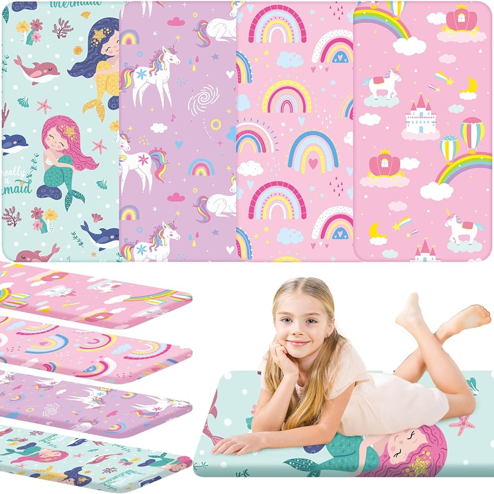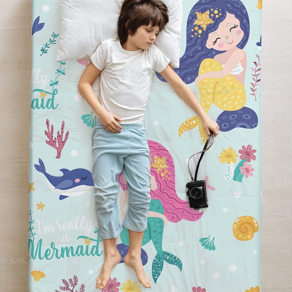 Popular with Children: nap mat sheet for daycare with patterns of rainbow, unicorns, balloons and colorful mermaids, girls sleeping bag cover patterns that putting fun into your little one's nap time