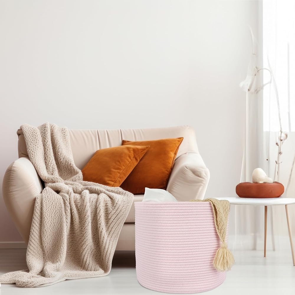 سلة تخزين من الحبال المنسوجة متعددة الأغراض: يبلغ مقاس سلة الغسيل المصنوعة من الحبال 40.64 سم عمقًا × 35.56 سم ارتفاعًا. تم تصميمها في الأصل كسلة حضانة، أو سلة أطفال، أو سلة غسيل أطفال، ويمكن استخدامها لأكثر من ذلك. يمكنك استخدام سلة الحبال المنسوجة هذه كسلة بطانية، أو سلة ألعاب، أو سلة حضانة، أو سلة للحيوانات المحنطة، أو سلة ملابس أطفال، أو سلة نباتات، أو سلة وسادة، أو سلة مناشف، أو حتى سلة ألعاب للحيوانات الأليفة. الاحتمالات لا حصر لها. مثالية لتخزين مستلزمات الطفل اليومية.