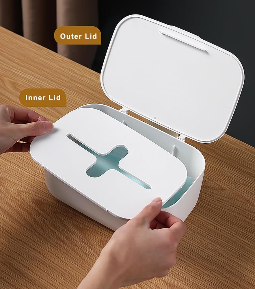 Easy To Refill: The feminine wipes box dispenser is equipped with a rotating buckle for convenient opening, closing and easy to use and refill. And the outer lid and inner lid design make it have a good seal performance, which keep wipes moist for a long time. Discreet and easy access.